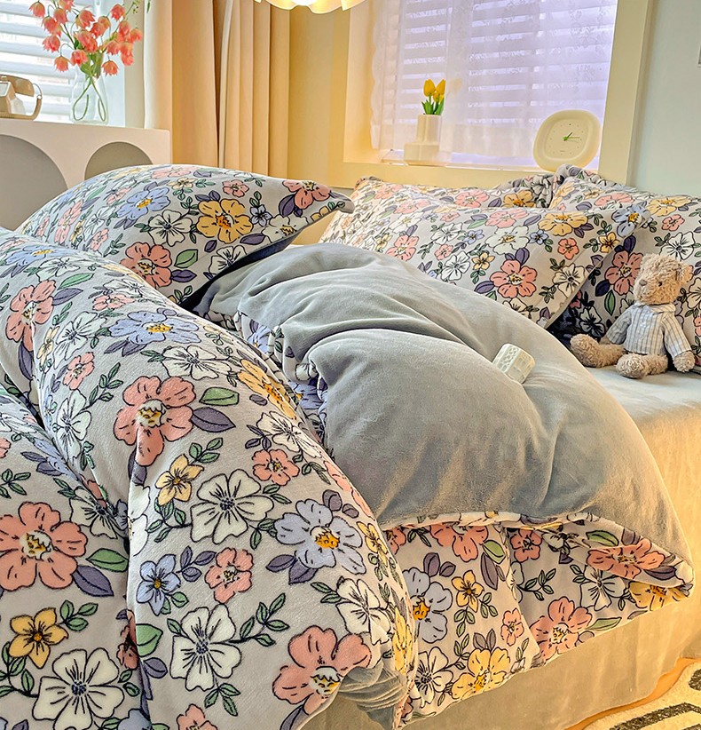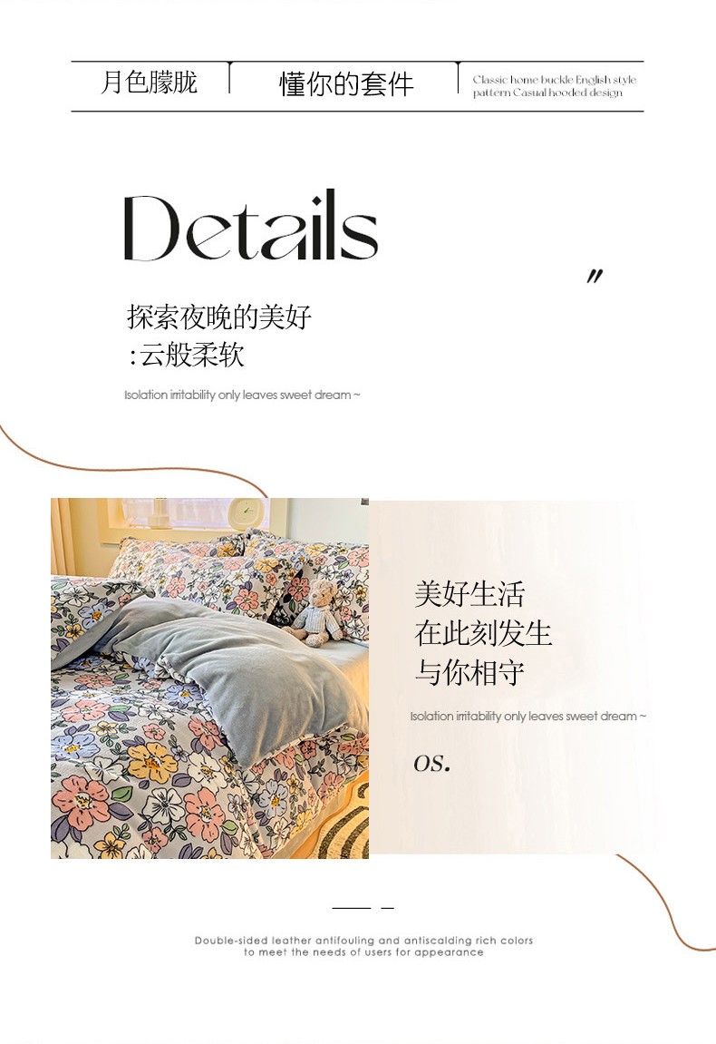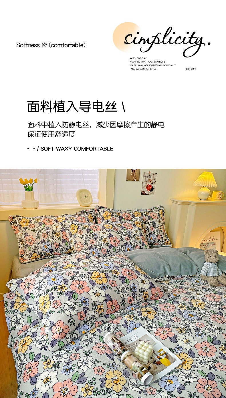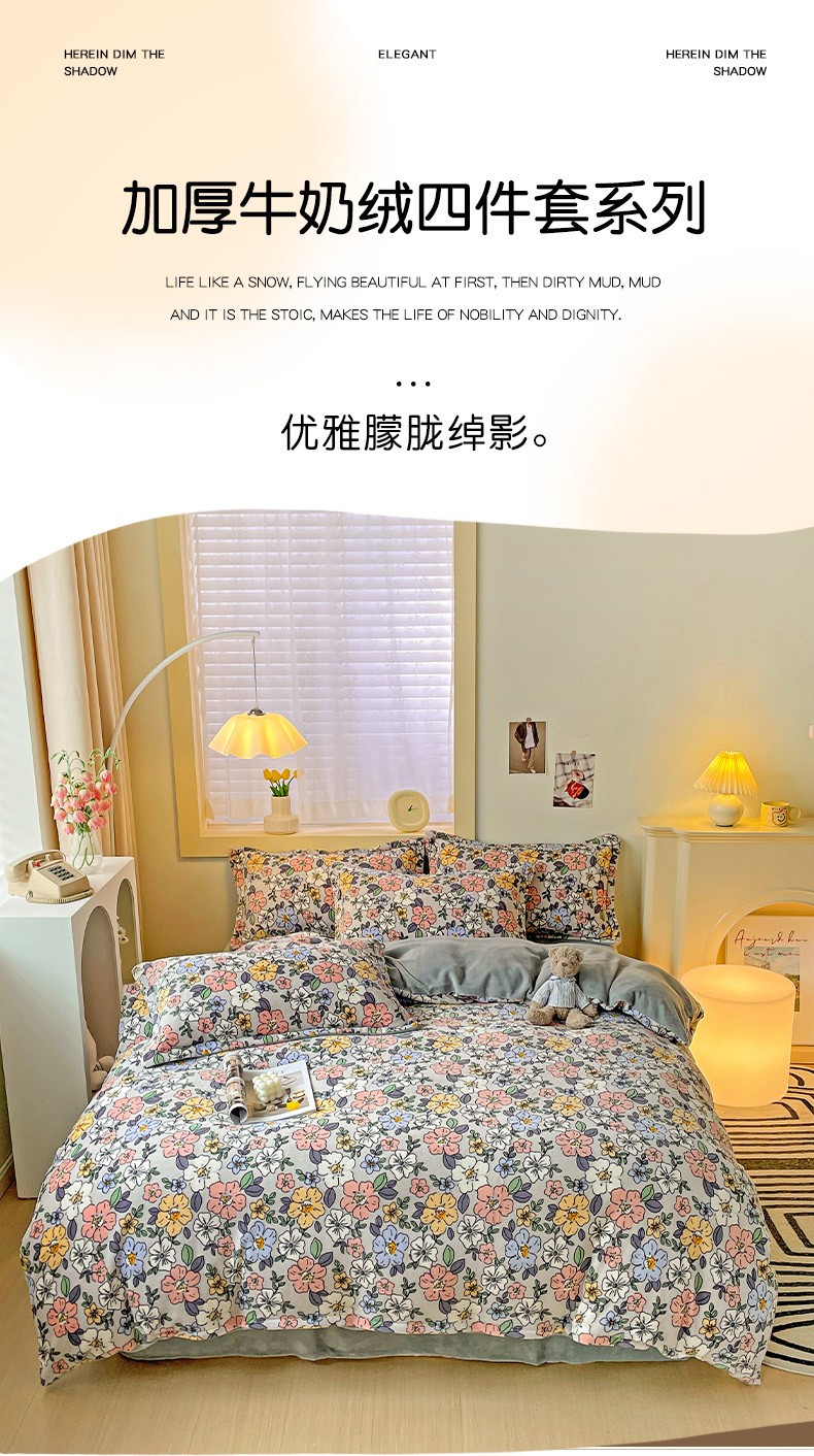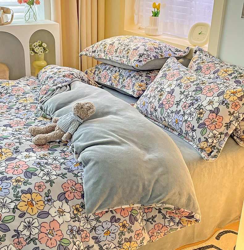 当前位置: 91家纺网 > 商品网购 > 床品套件 > 四件套 > 牛奶绒四件套 > 畅畅家纺 2023新款活性印花小清新AB版加厚高克重法莱绒牛奶绒四件套 雅菲