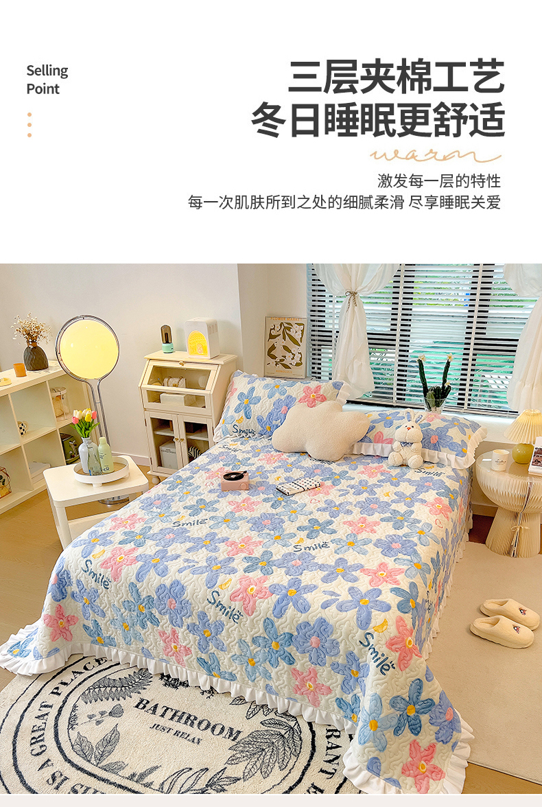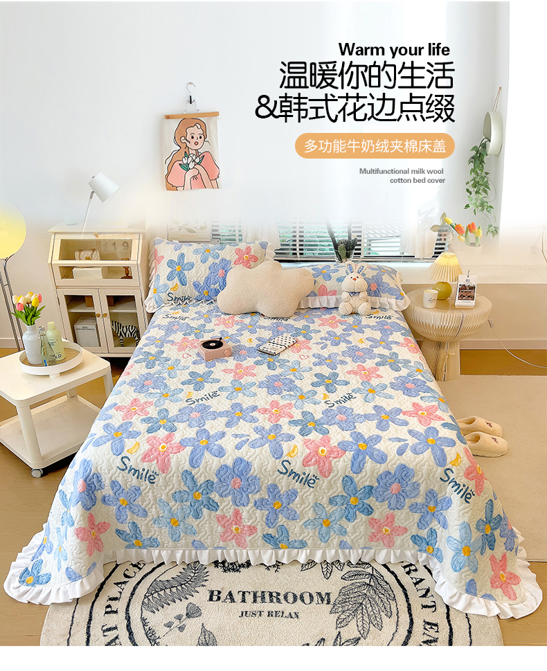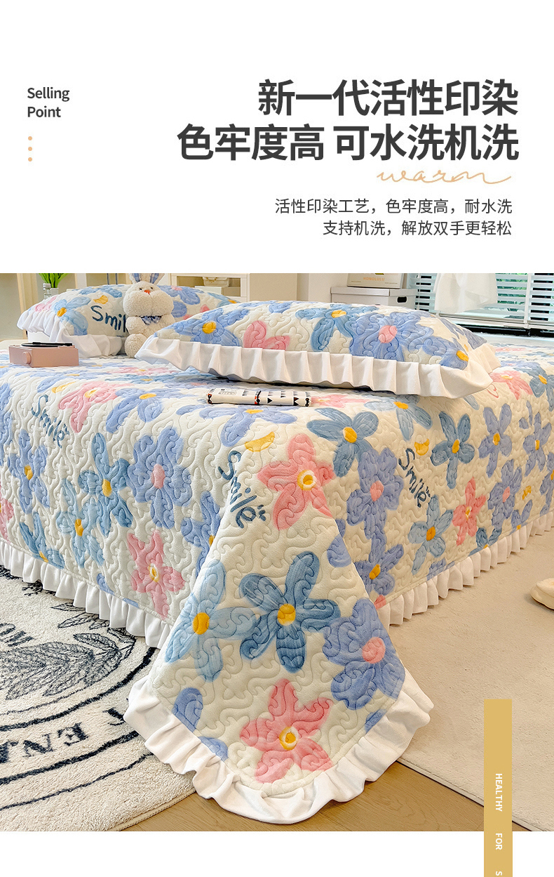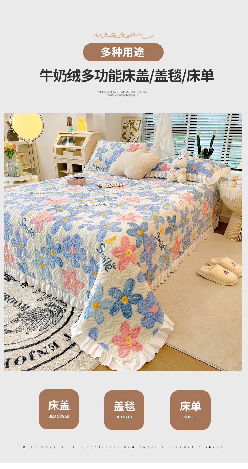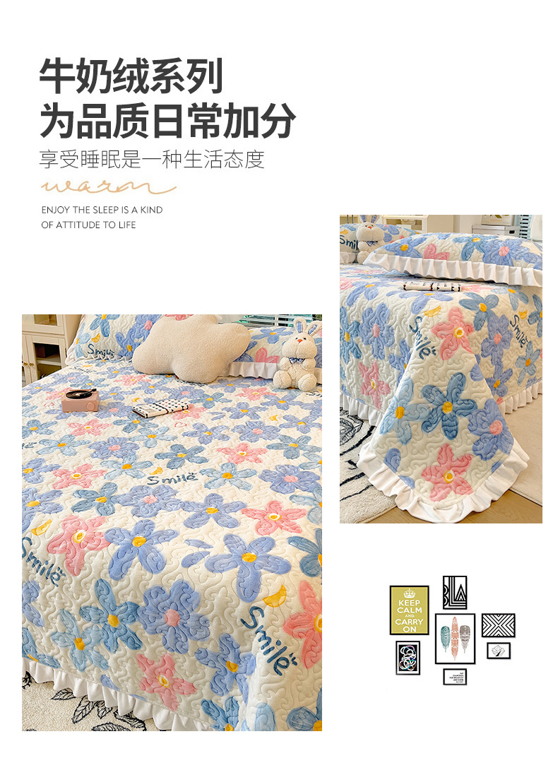 梵朴2023新款冬季加厚牛奶绒床盖 情人洽洽