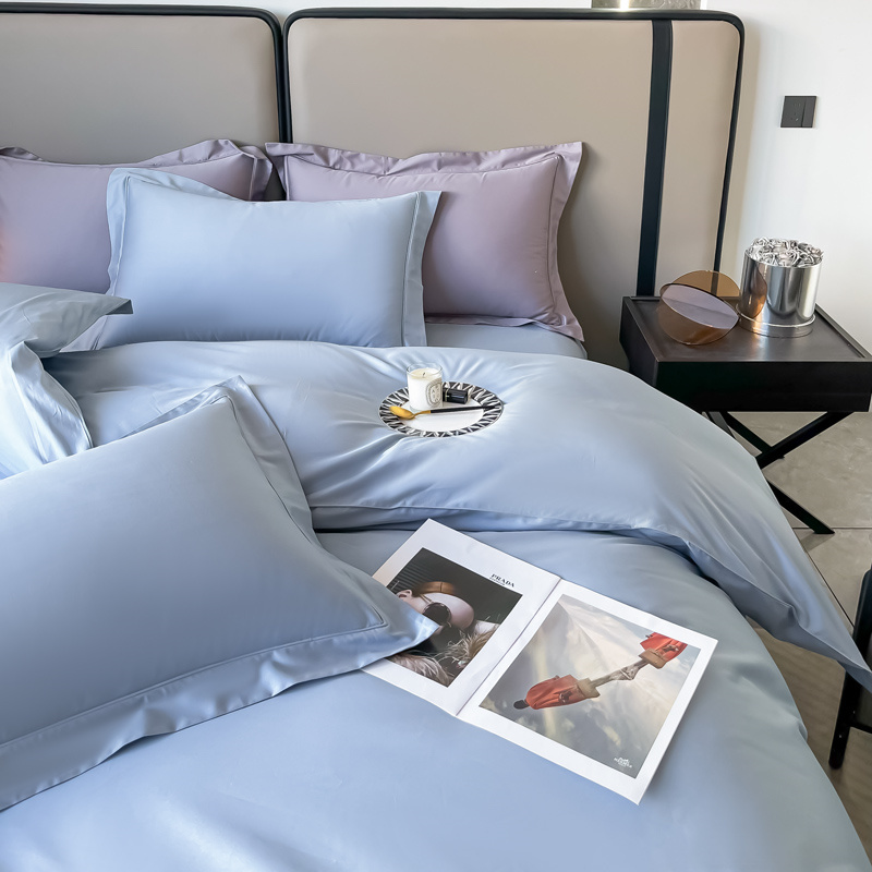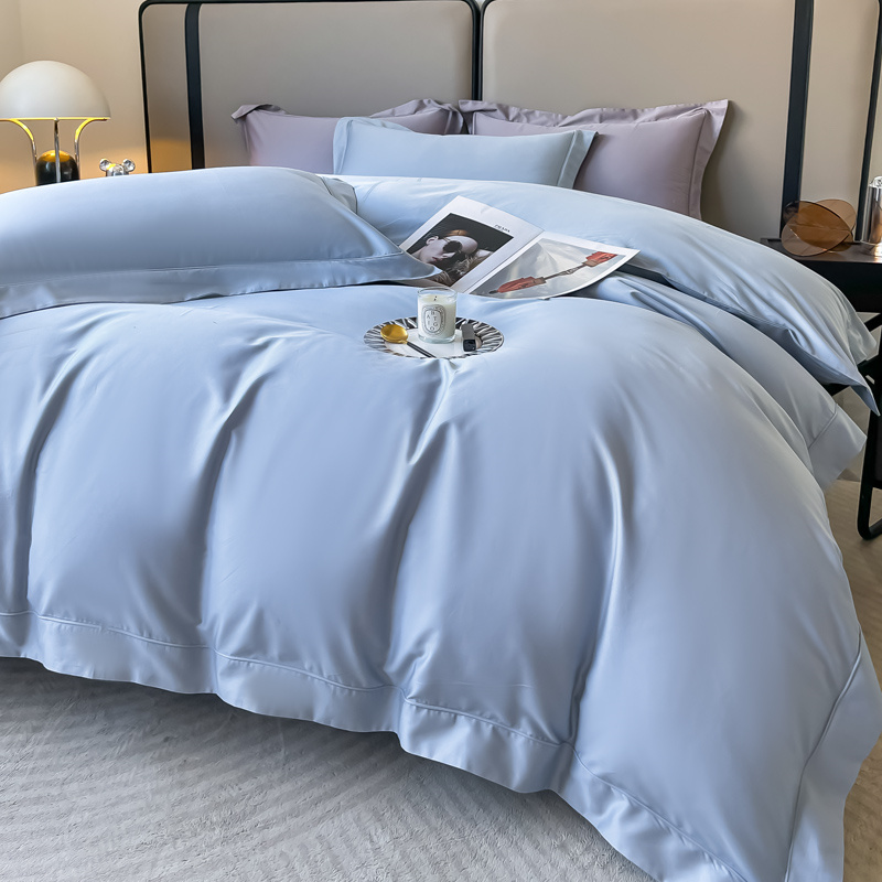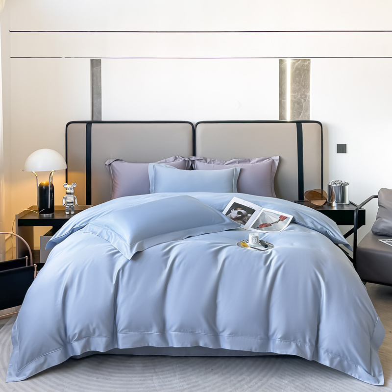 嘉汀兰家居 2023秋冬新品100支双股长绒棉埋绳纯色四件套-卡西欧系列 浅蓝