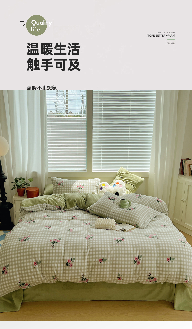 当前位置: 91家纺网 > 商品网购 > 床品套件 > 四件套 > 牛奶绒四件套 > 三朵家纺 2023年牛奶绒小清新系列四件套 漫漫花季