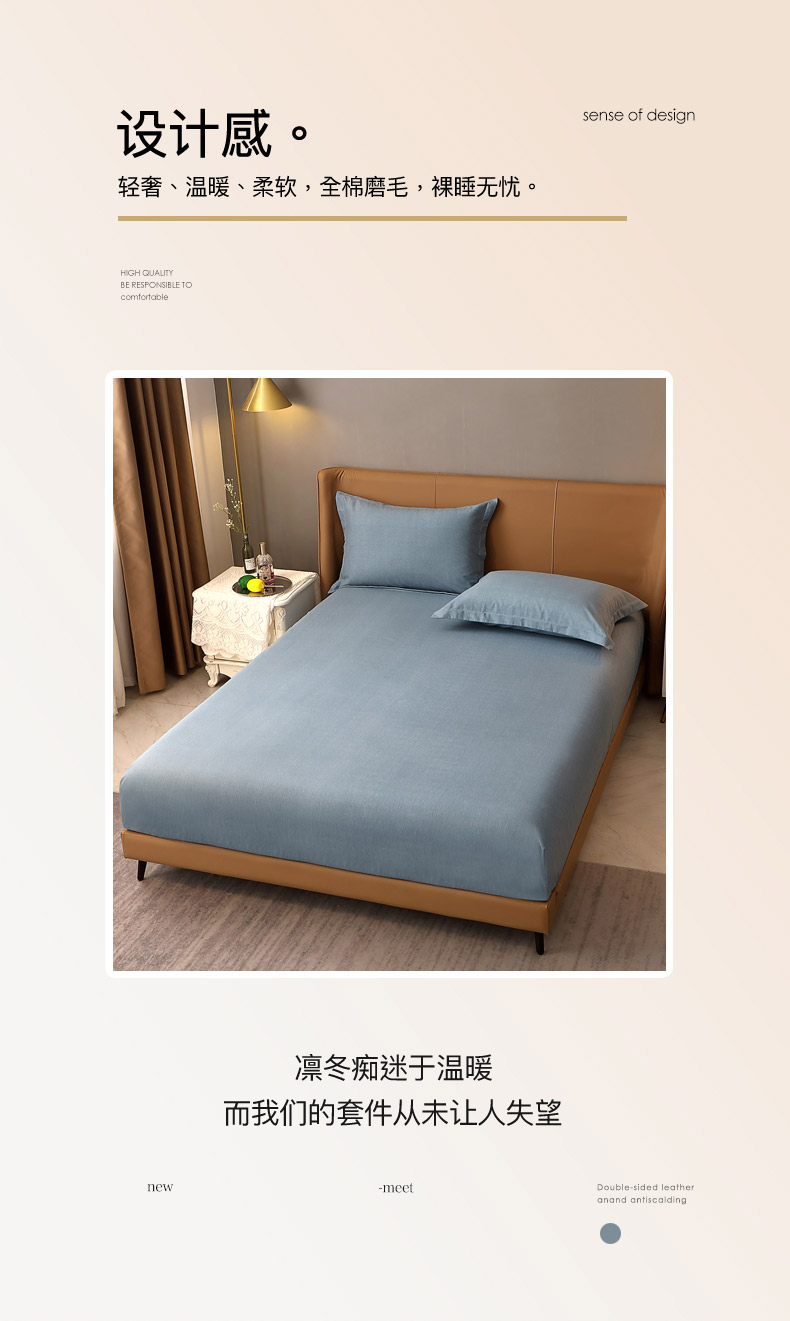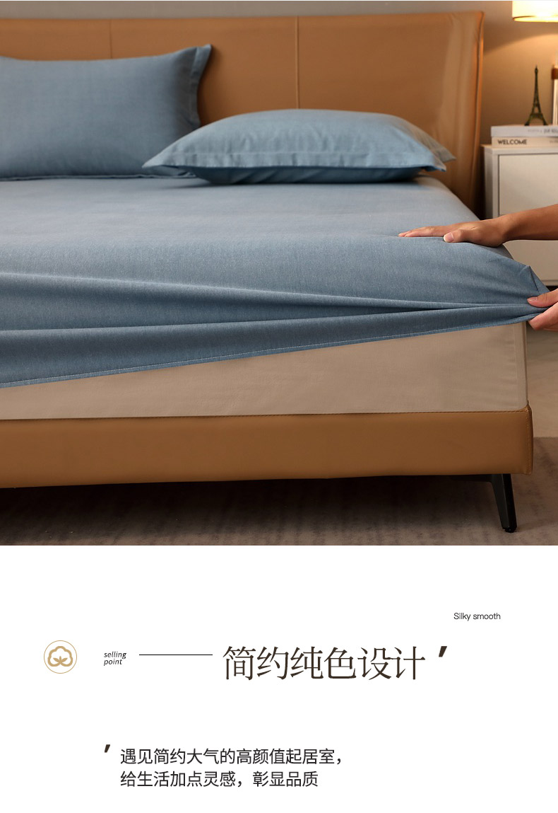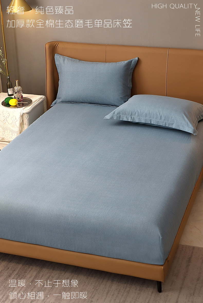 晶缦家纺 2023加厚全棉纯色生态磨毛多规格单品四件套--床笠 纯依-蓝灰