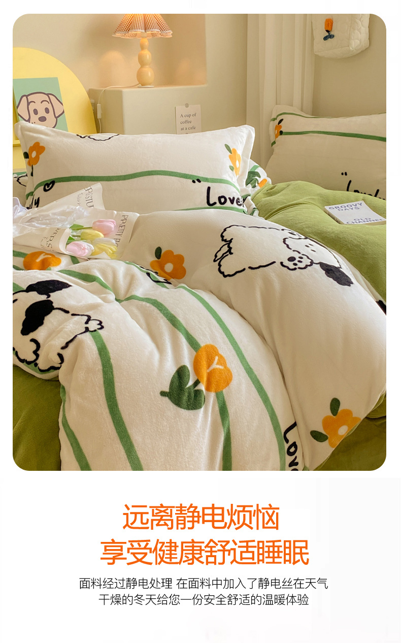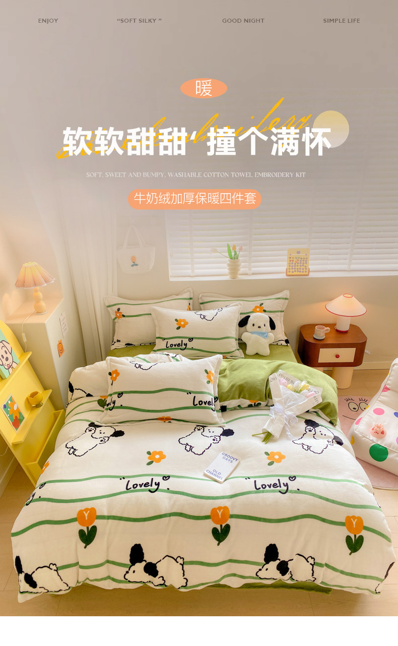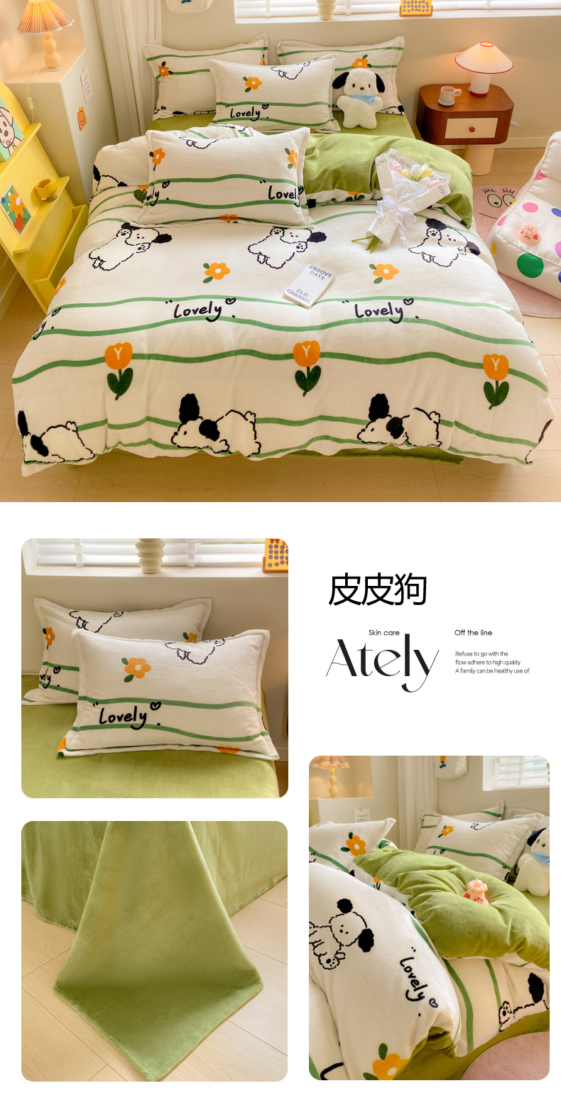 当前位置: 91家纺网 > 商品网购 > 床品套件 > 四件套 > 牛奶绒四件套 > 沐慕 2024新款牛奶绒加厚保暖卡通印花四件套 皮皮狗