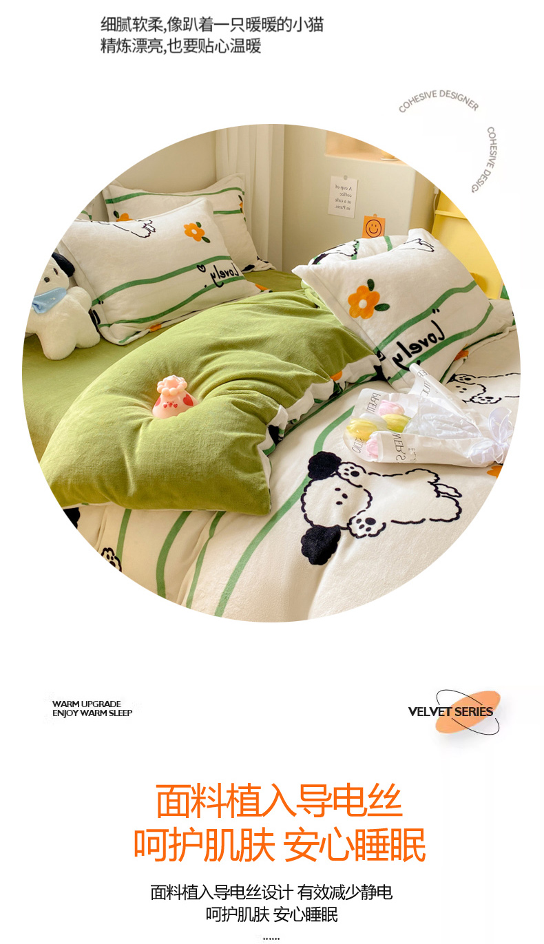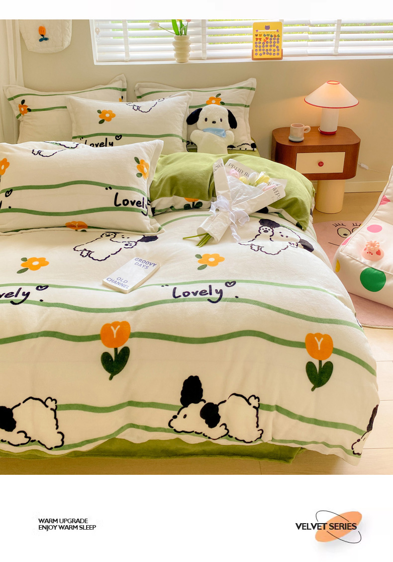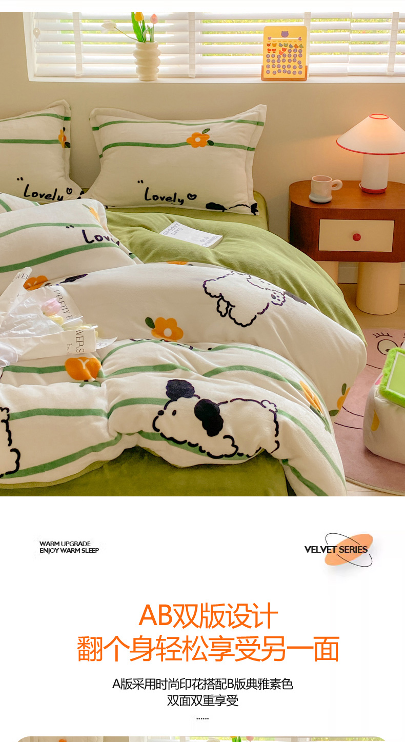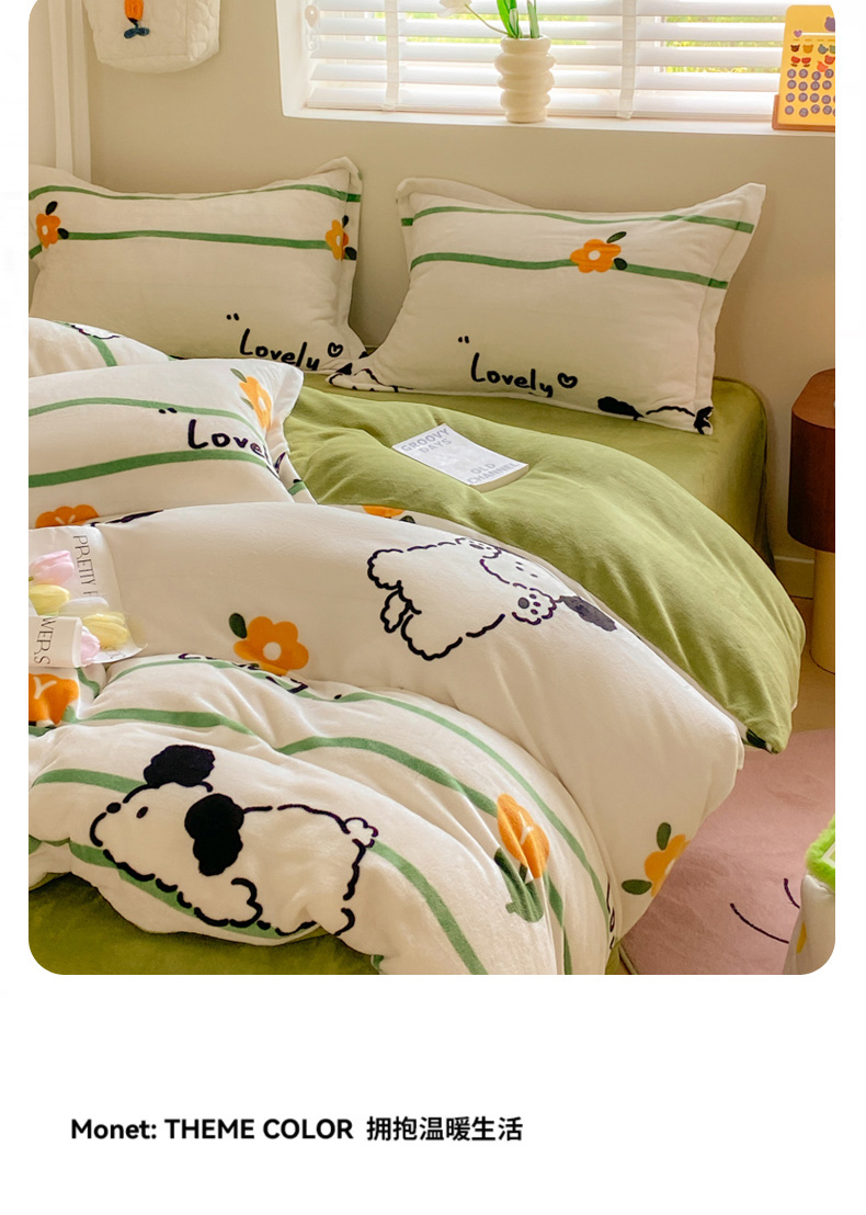 当前位置: 91家纺网 > 商品网购 > 床品套件 > 四件套 > 牛奶绒四件套 > 沐慕 2024新款牛奶绒加厚保暖卡通印花四件套 皮皮狗