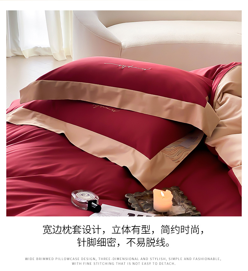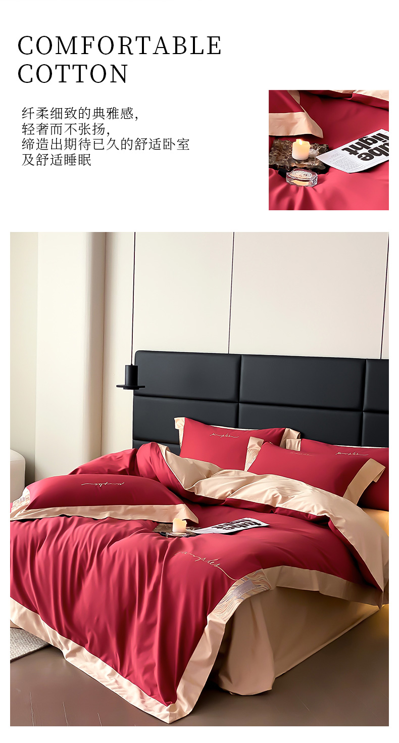 商品名称:爱缦 2023新款极光系列100支澳棉四件套风格一 胭脂红