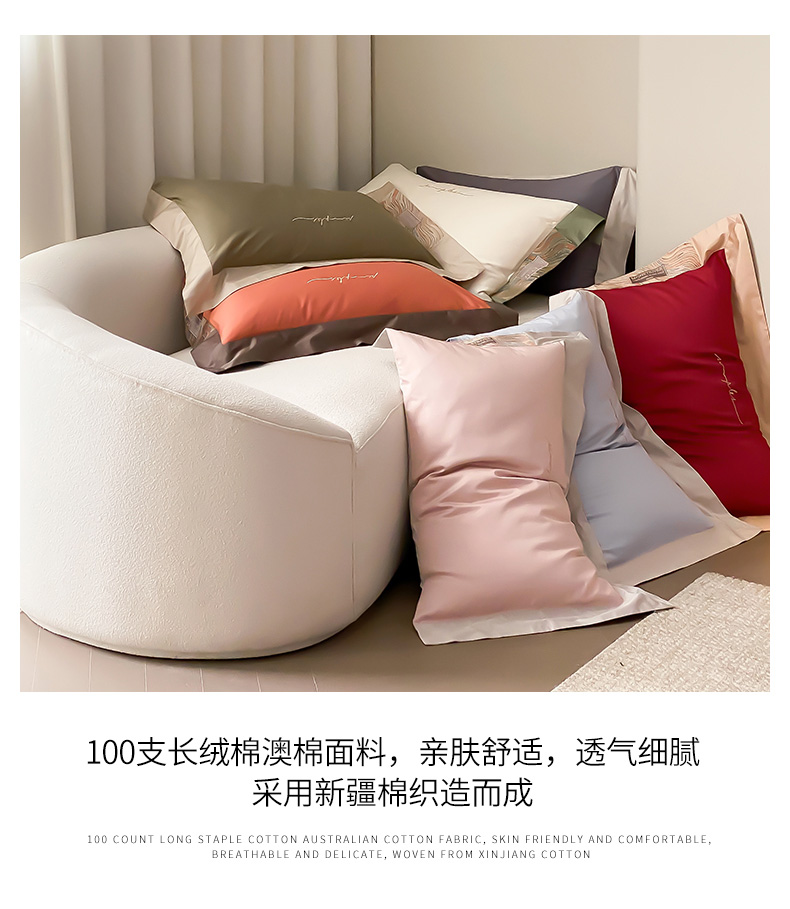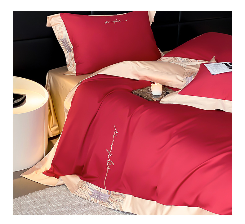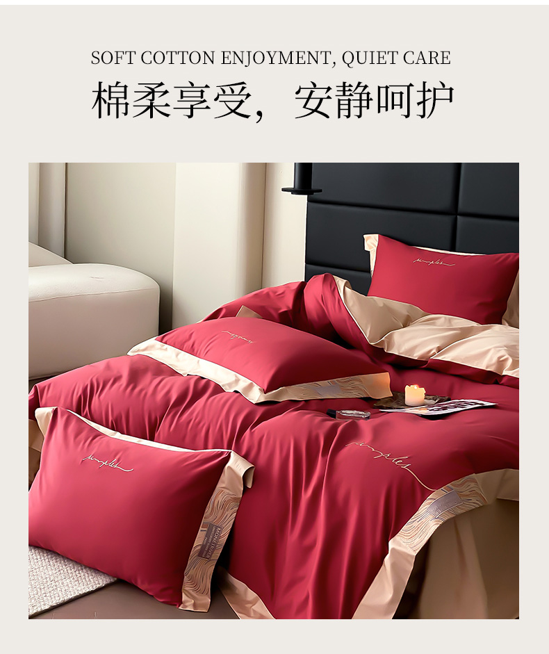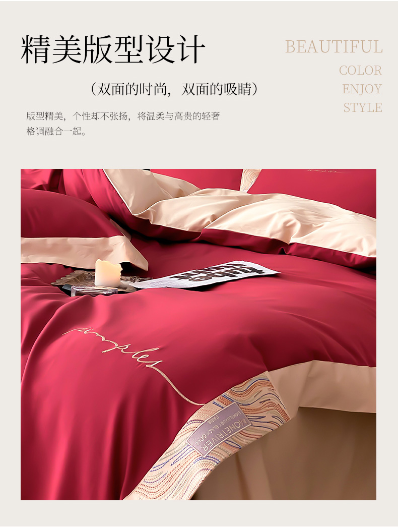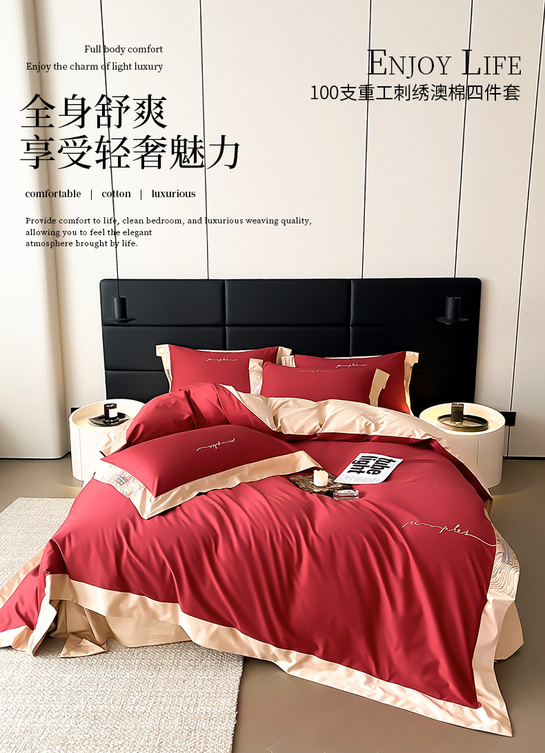 爱缦 2023新款极光系列100支澳棉四件套风格一 胭脂红