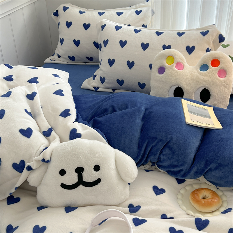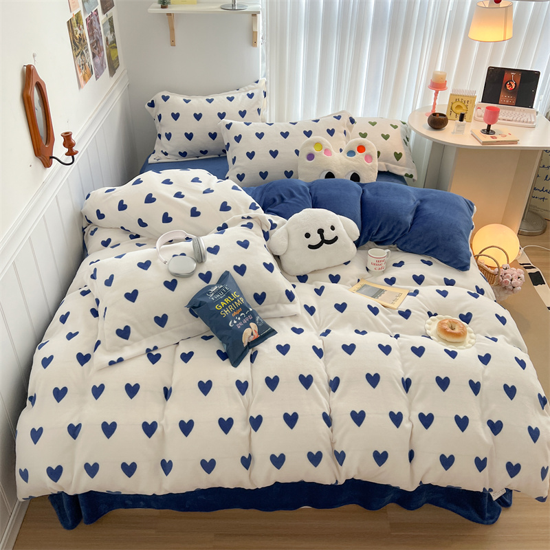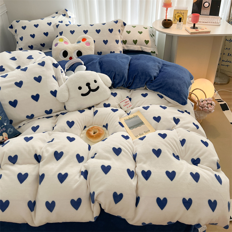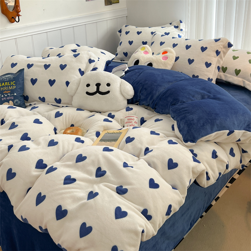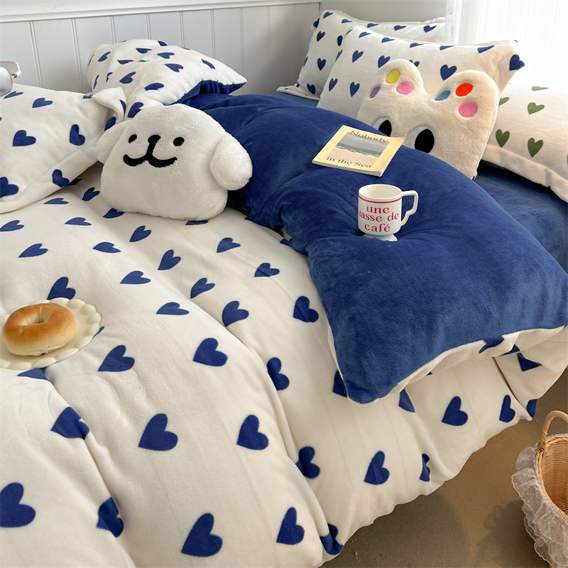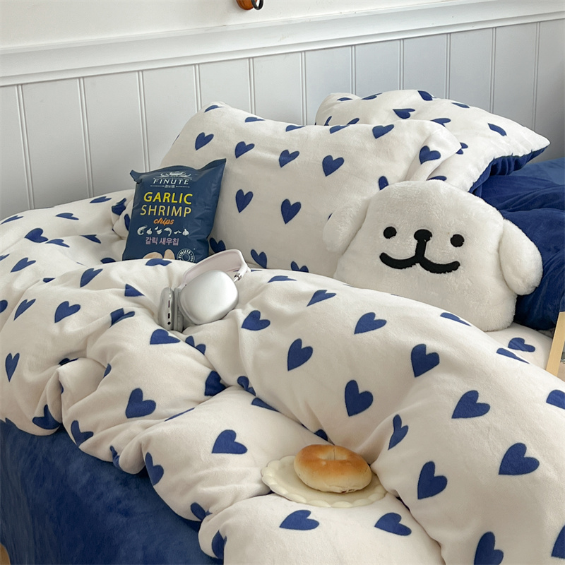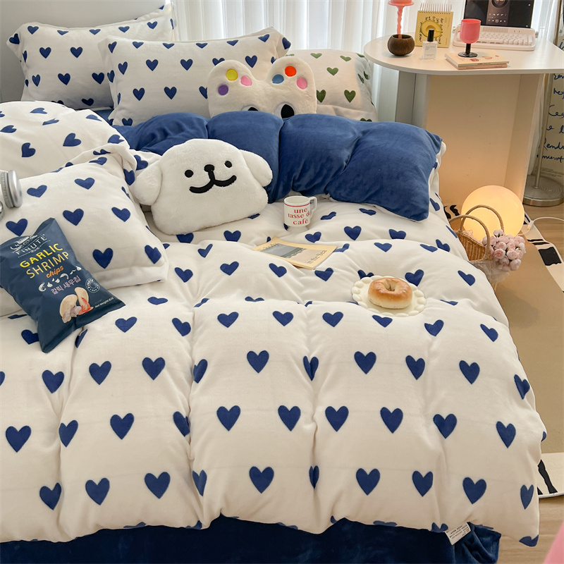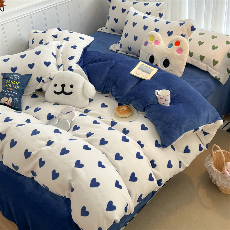 顾里家纺 新款ins少女保暖牛奶绒四件套第二批 蓝心