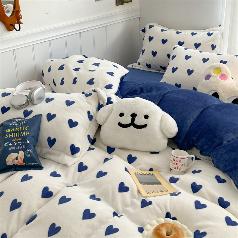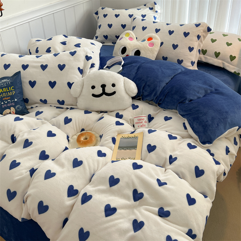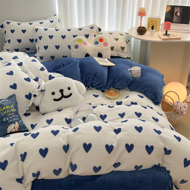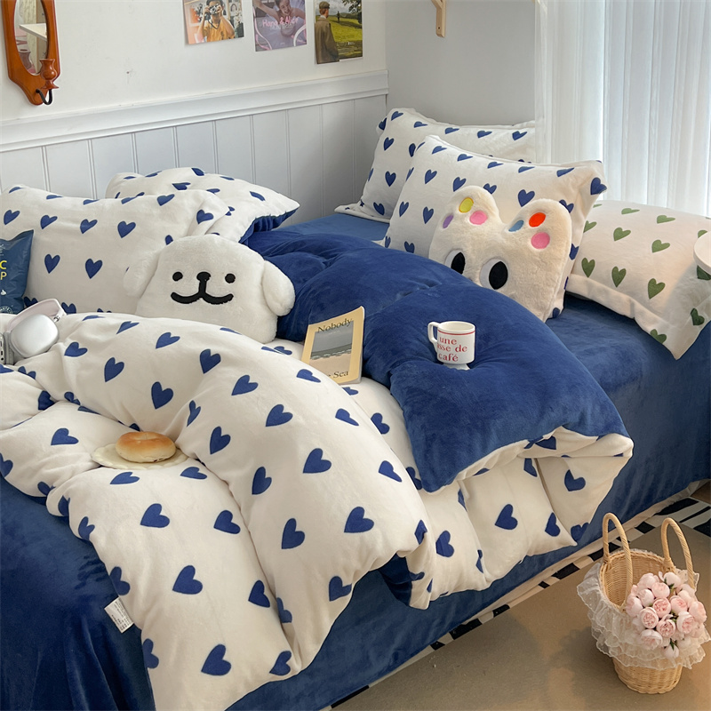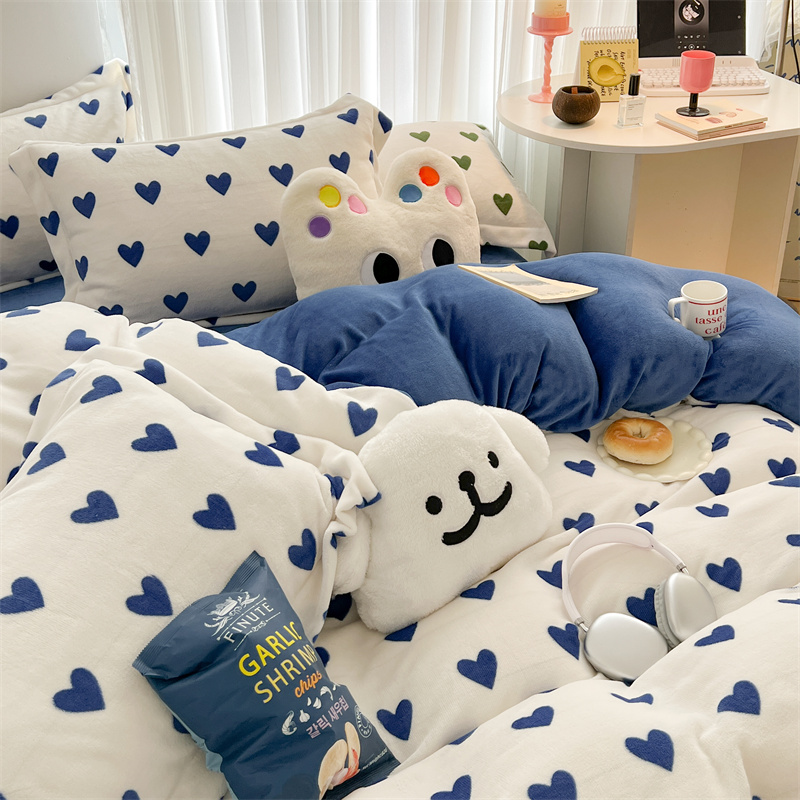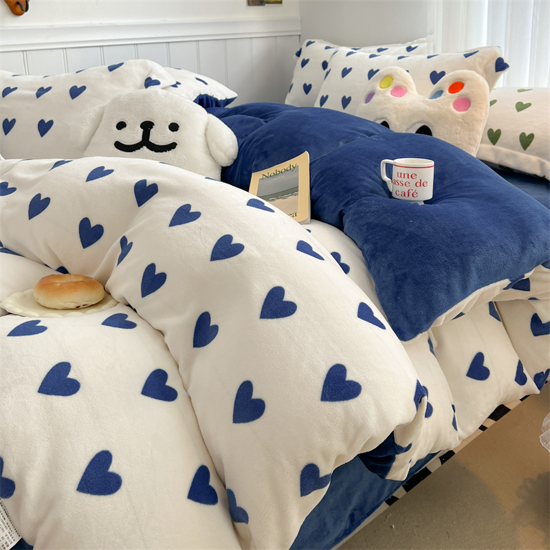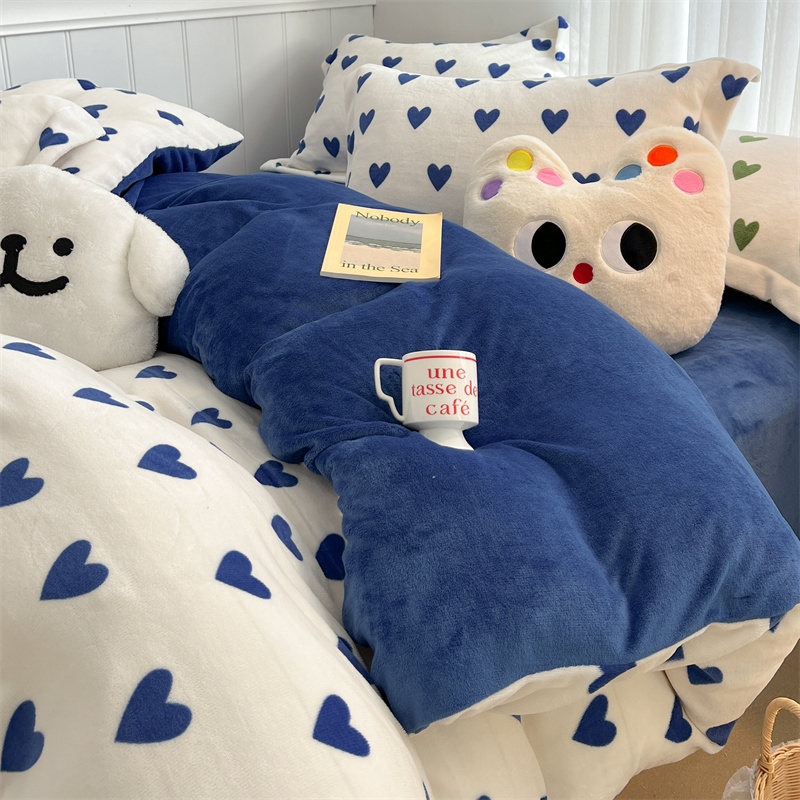 顾里家纺 新款ins少女保暖牛奶绒四件套第二批 蓝心