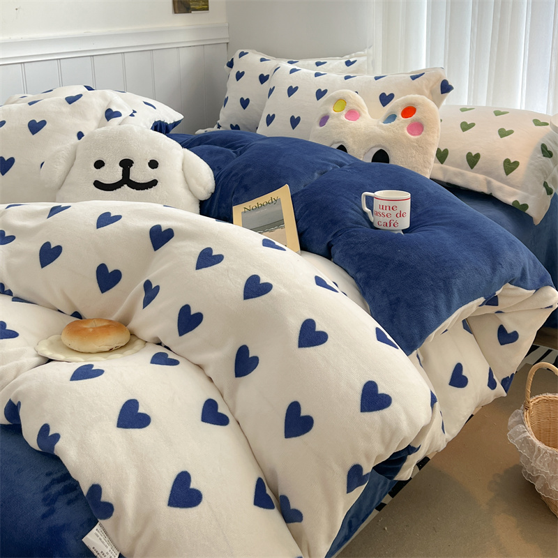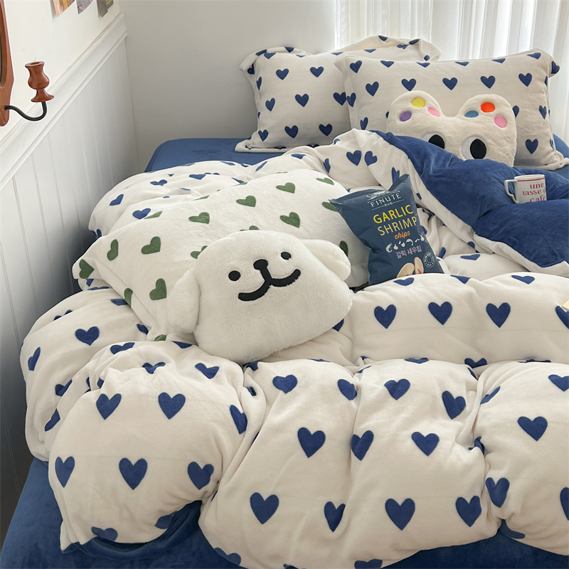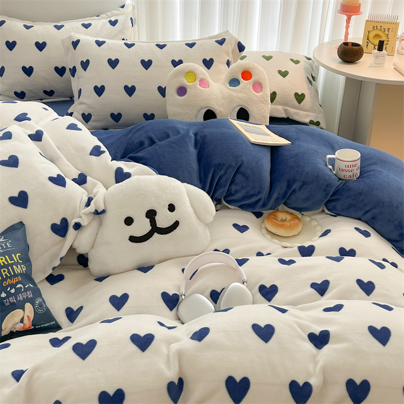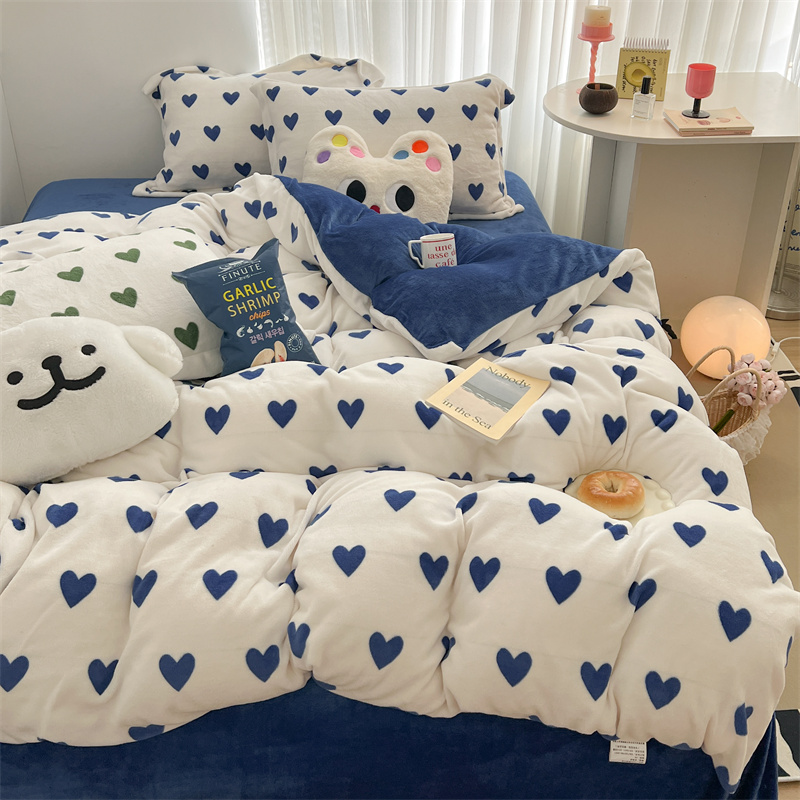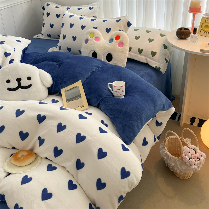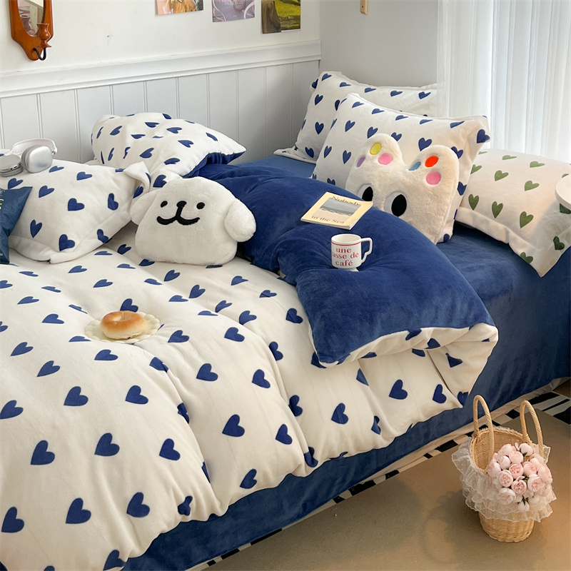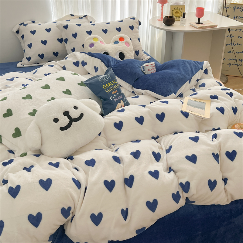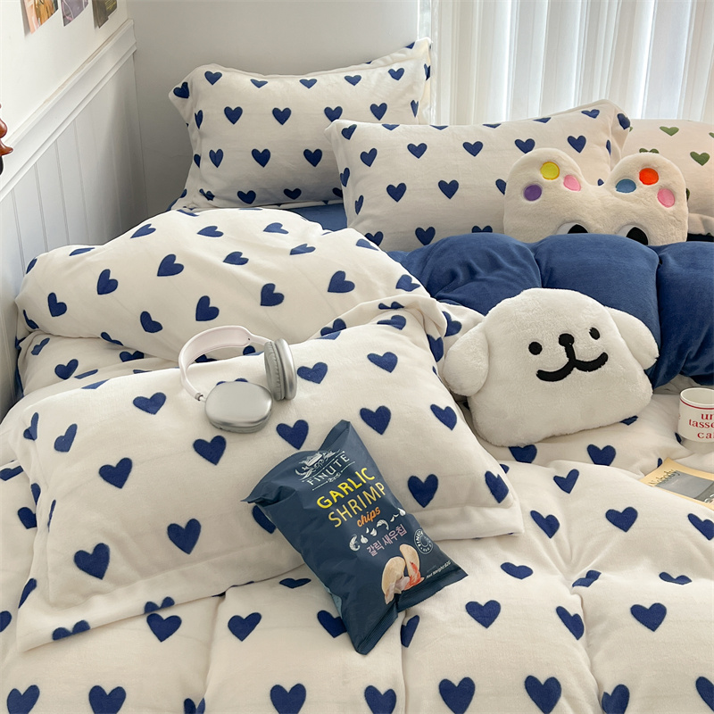 顾里家纺 新款ins少女保暖牛奶绒四件套第二批 蓝心