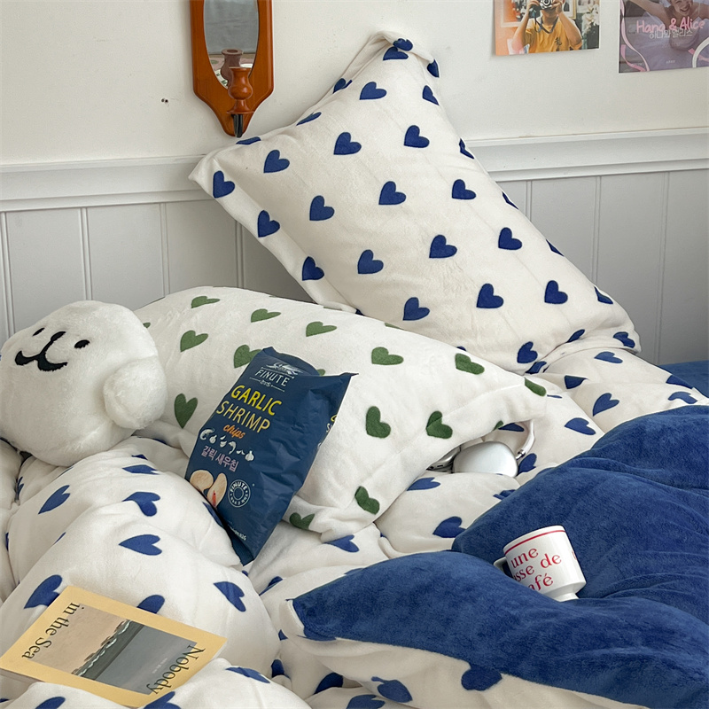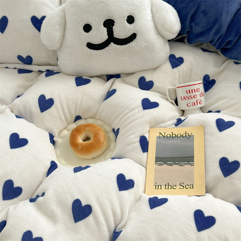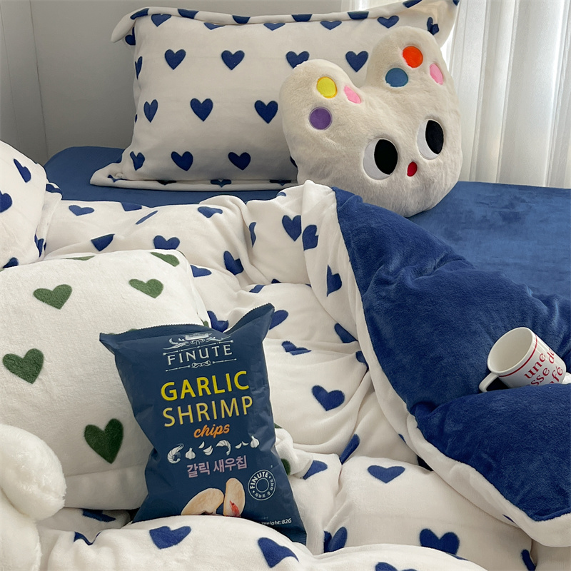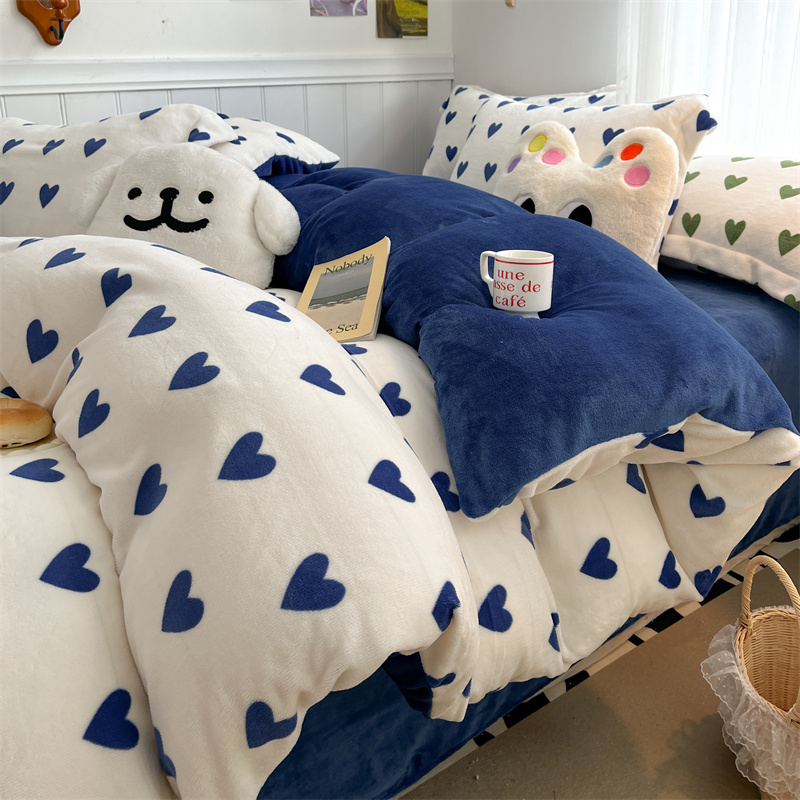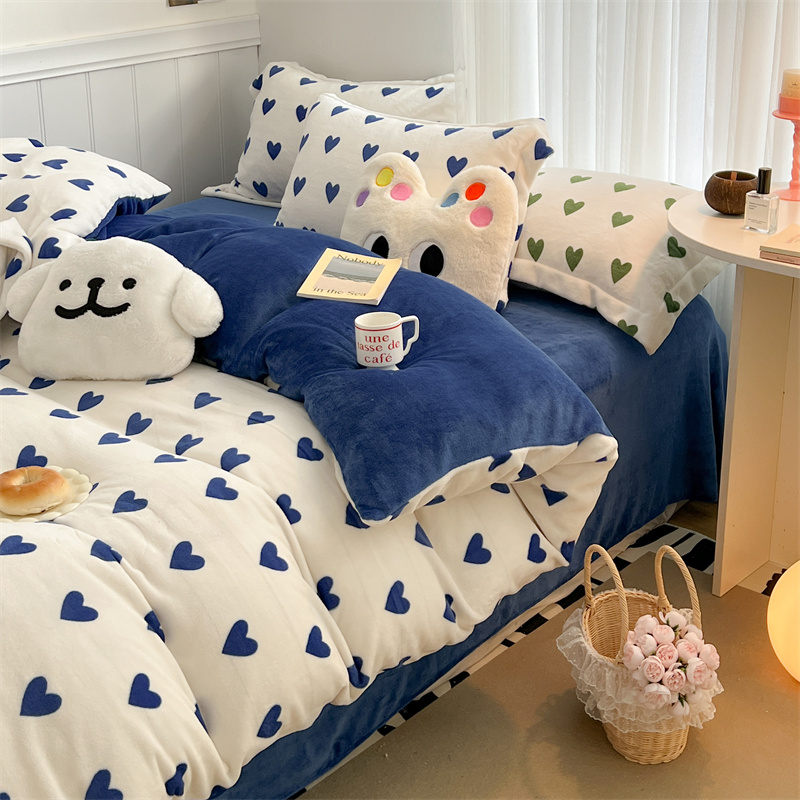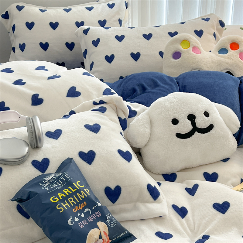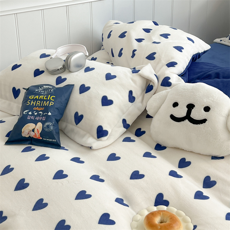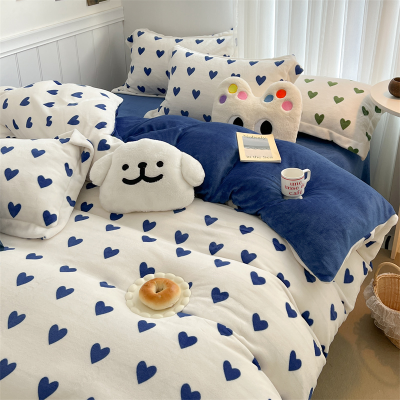 顾里家纺 新款ins少女保暖牛奶绒四件套第二批 蓝心