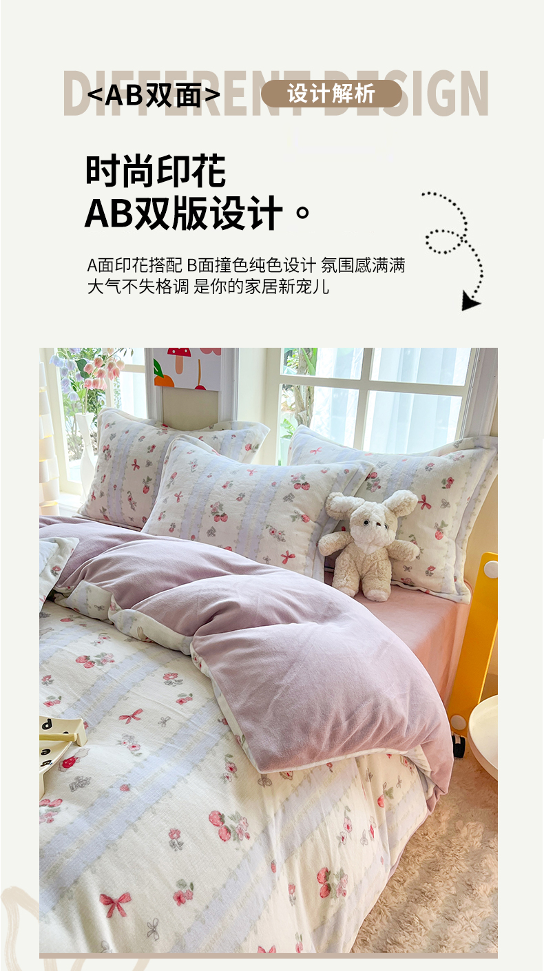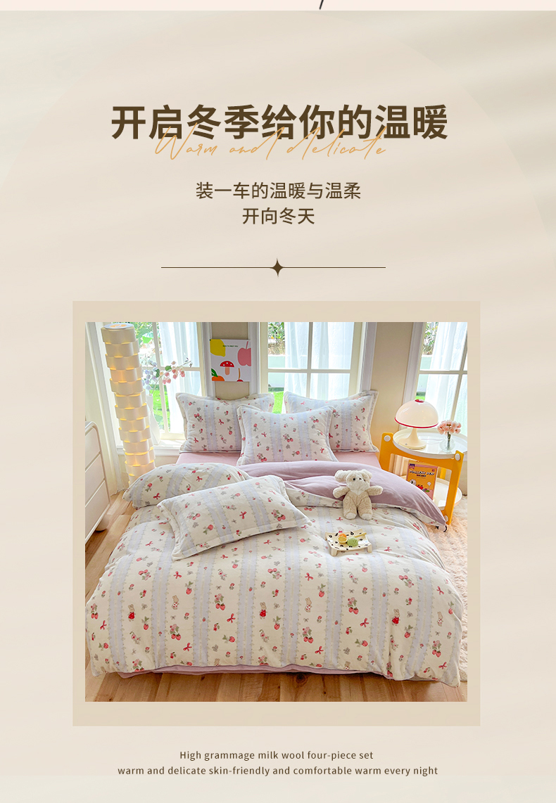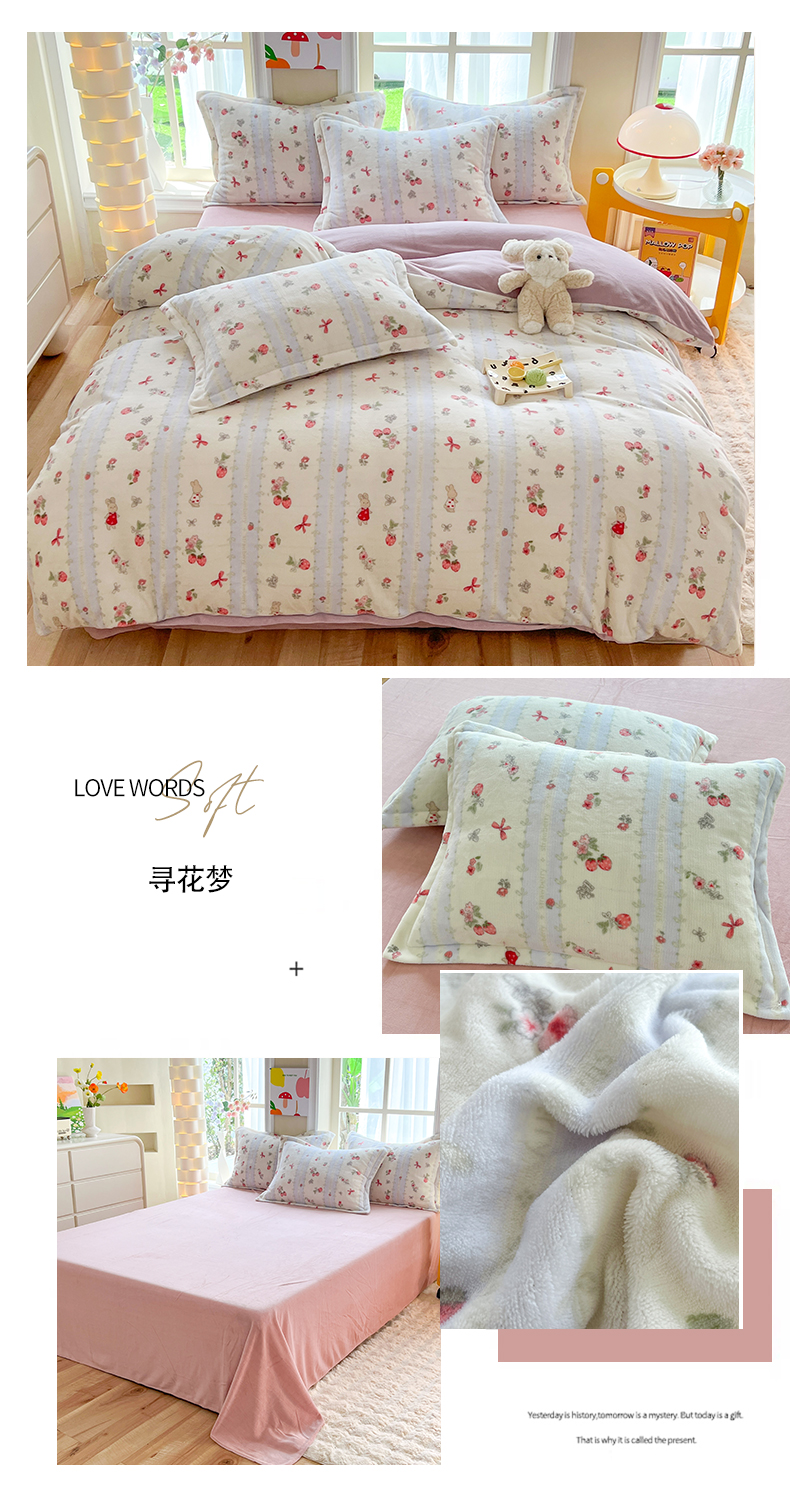 当前位置: 91家纺网 > 商品网购 > 床品套件 > 四件套 > 牛奶绒四件套 > 妖妖家纺 2023新款牛奶绒四件套 寻花梦