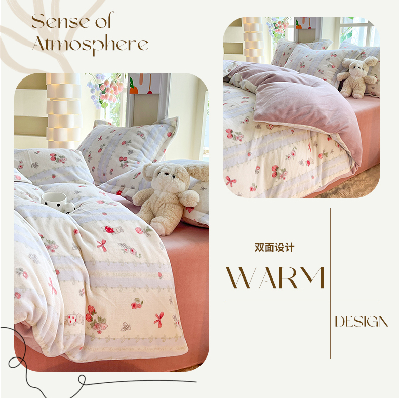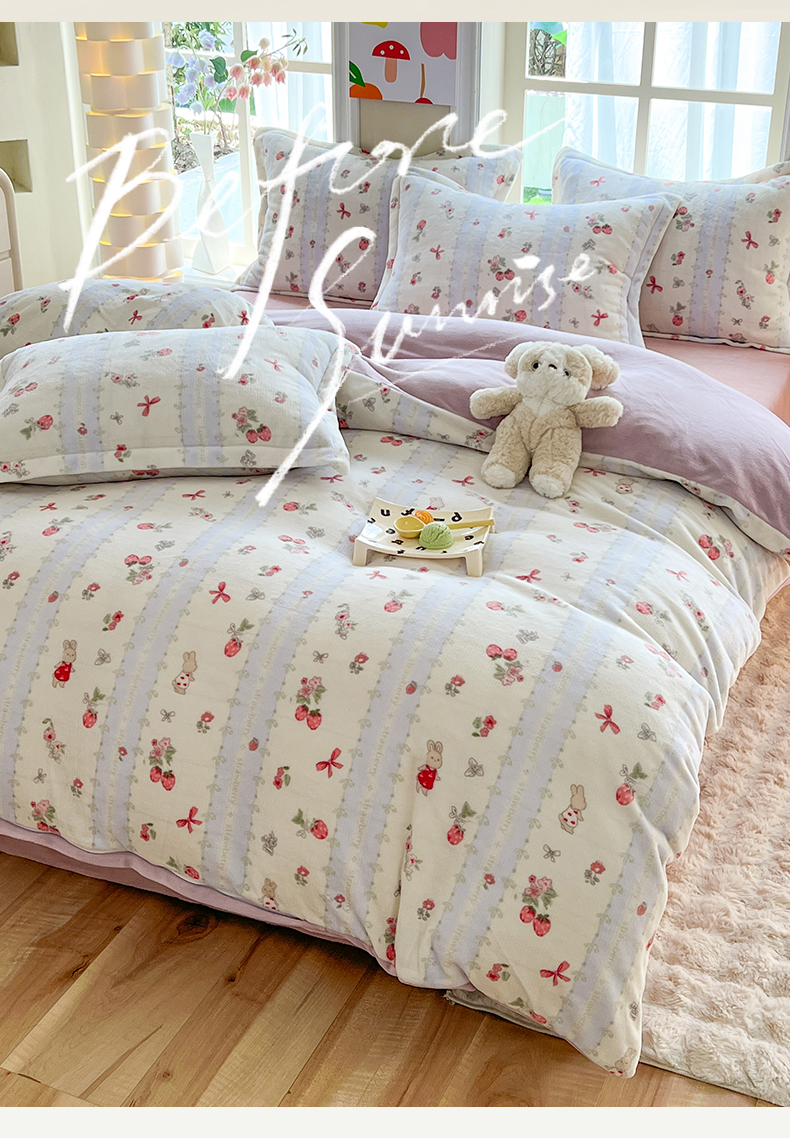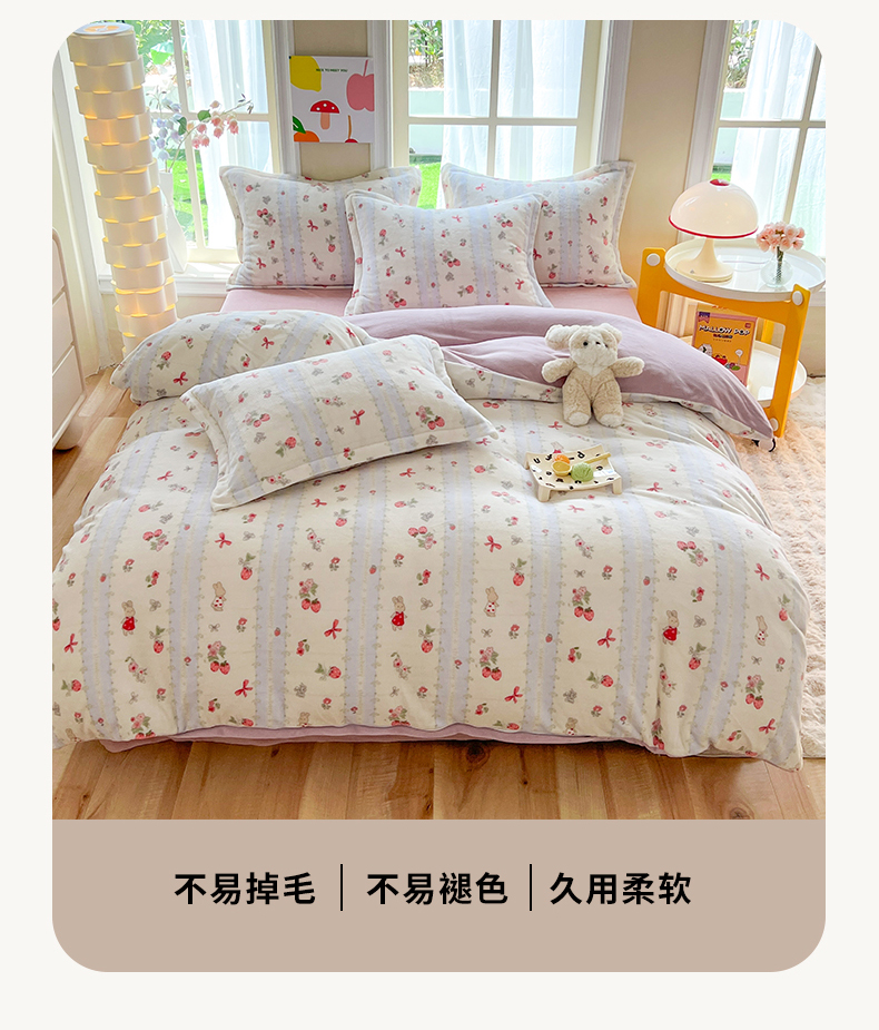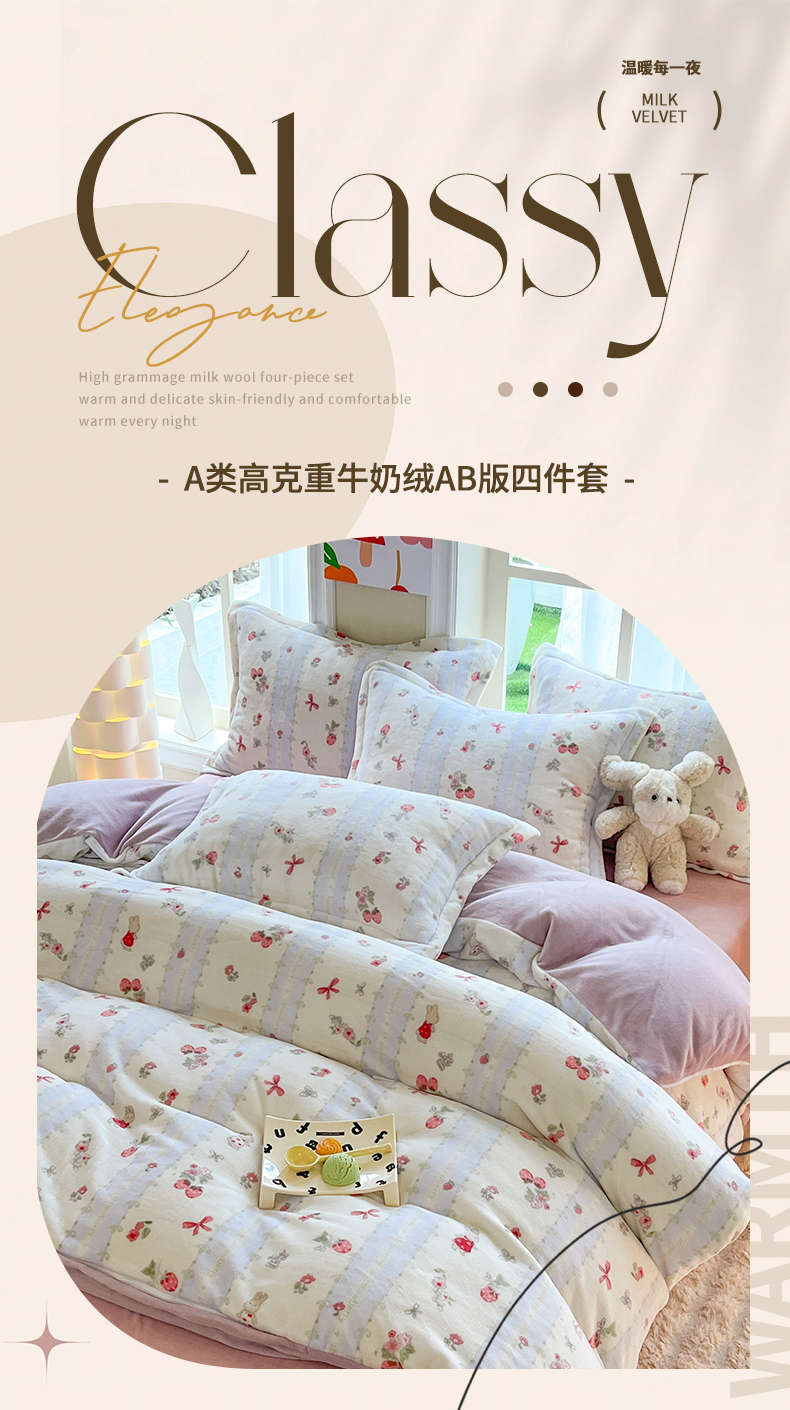 当前位置: 91家纺网 > 商品网购 > 床品套件 > 四件套 > 牛奶绒四件套 > 妖妖家纺 2023新款牛奶绒四件套 寻花梦