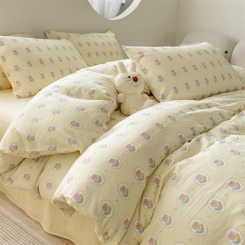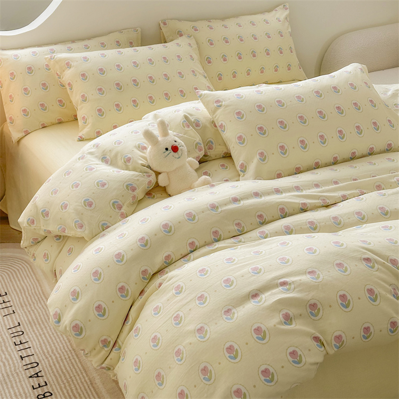 当前位置: 91家纺网 > 商品网购 > 床品套件 > 四件套 > 全棉活性四件套 > 优眠坊 2025新款全棉双层纱四件套 黄色郁金香
