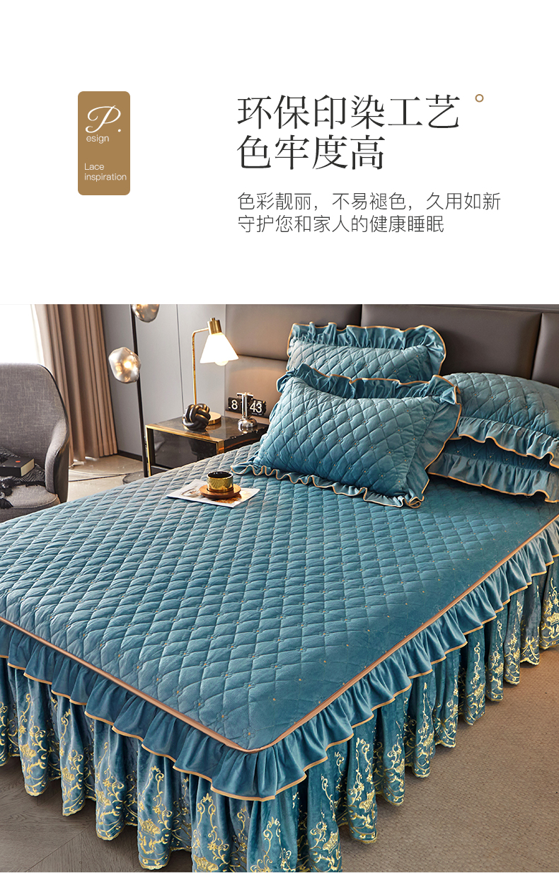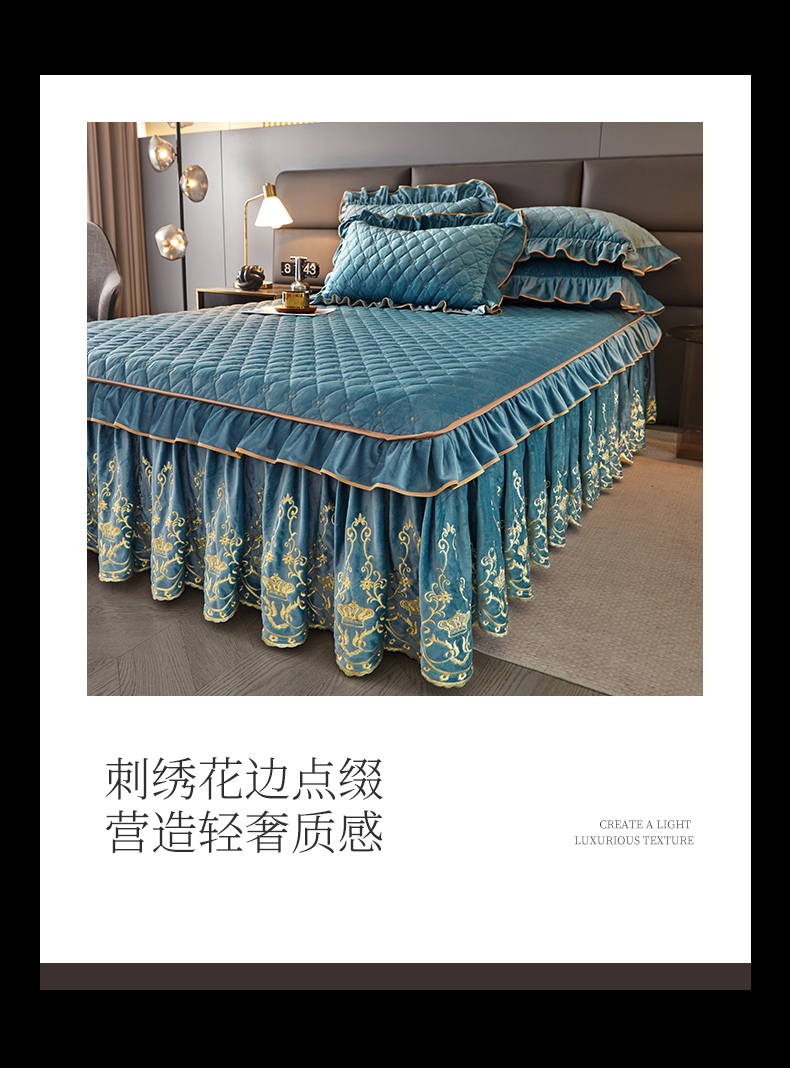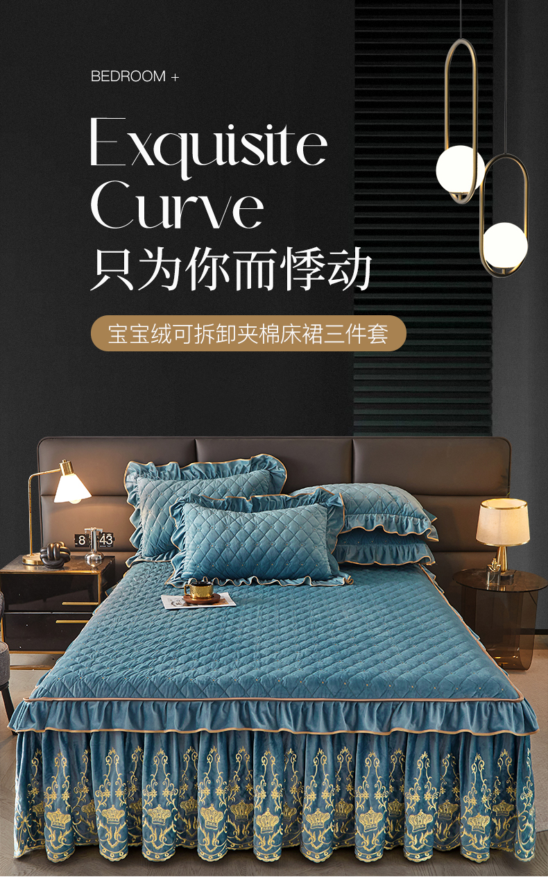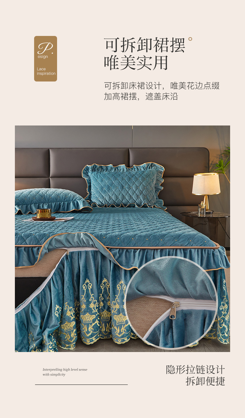 当前位置: 91家纺网 > 商品网购 > 床品套件 > 三件套 > 罗艺轩 2024新款欧洲风情宝宝绒可拆卸夹棉床裙三件套 绅士蓝