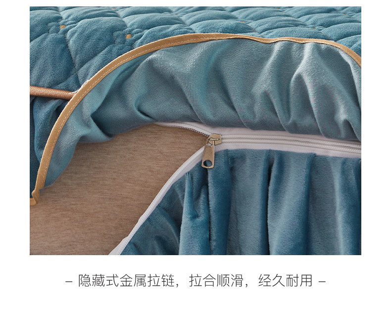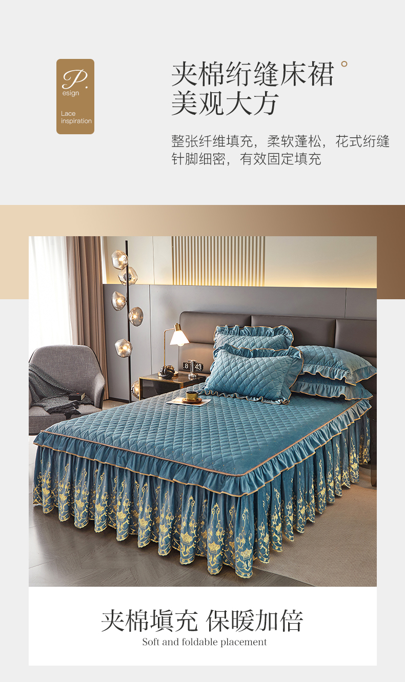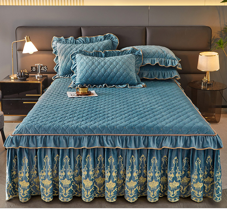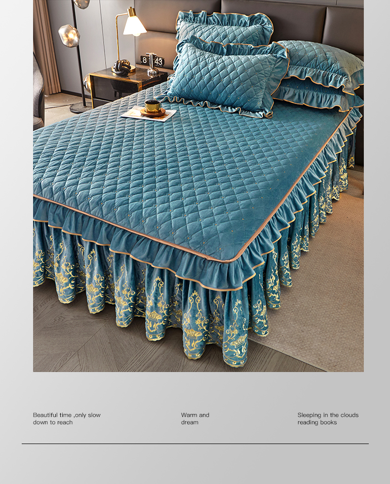 当前位置: 91家纺网 > 商品网购 > 床品套件 > 三件套 > 罗艺轩 2024新款欧洲风情宝宝绒可拆卸夹棉床裙三件套 绅士蓝