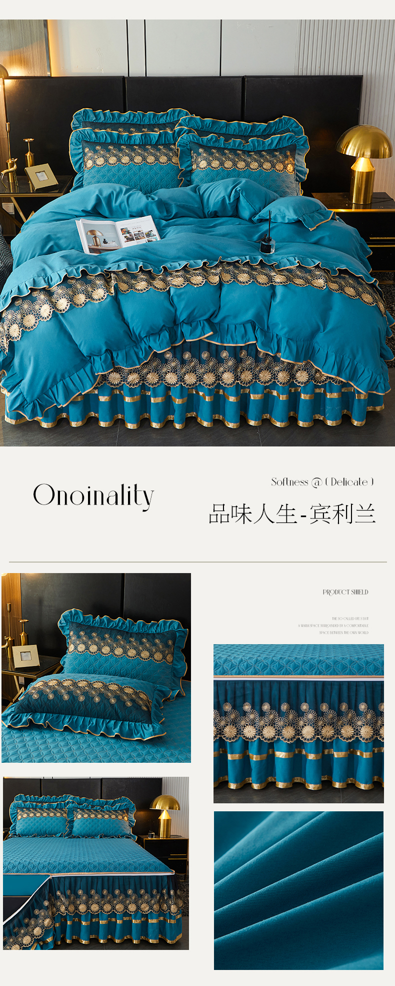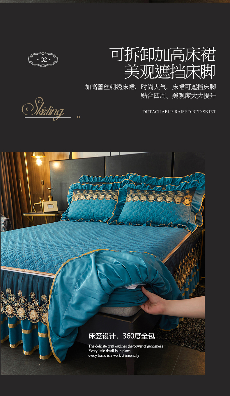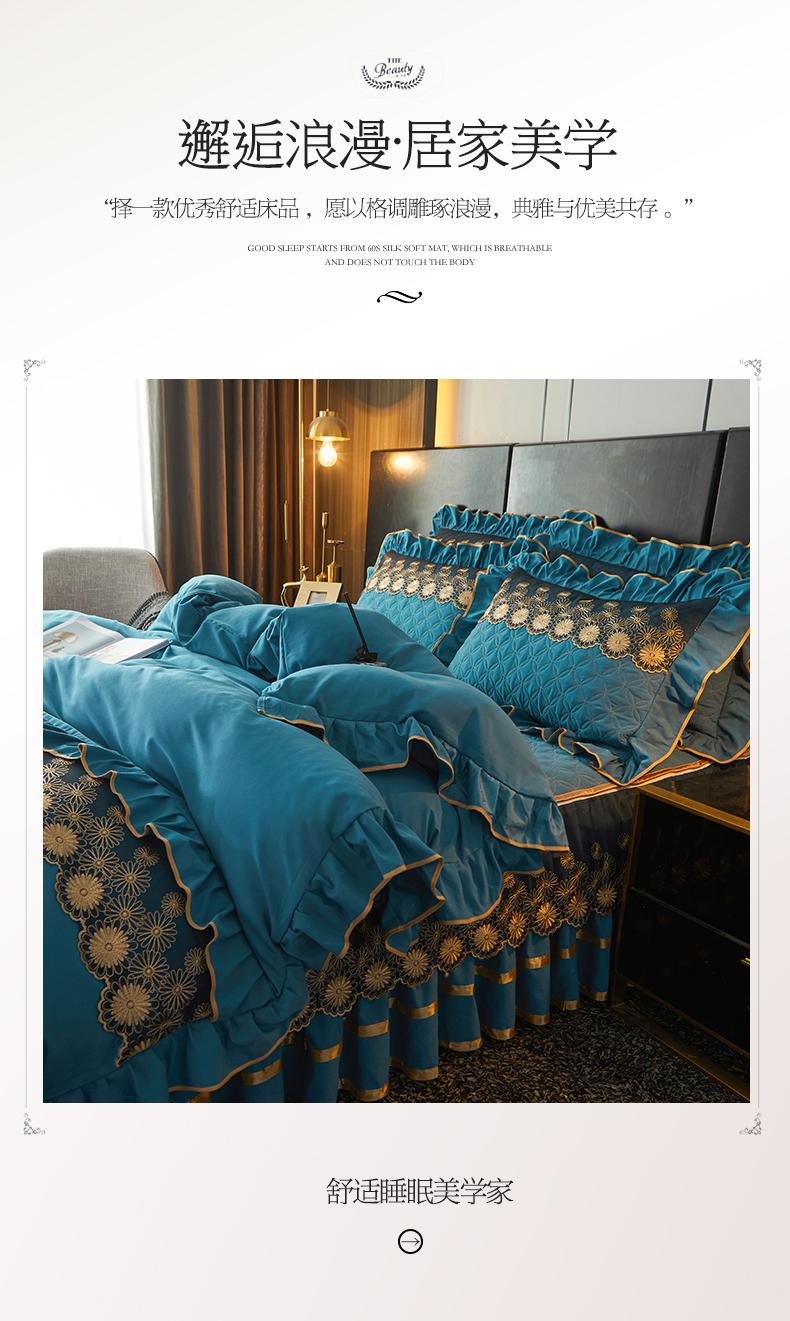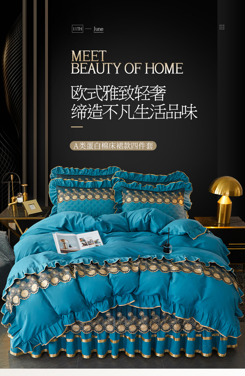 当前位置: 91家纺网 > 商品网购 > 床品套件 > 四件套 > 化纤普通四件套 > 罗艺轩 2024新款A类蛋白棉夹棉床裙四件套-品味人生 品味人生-宾利兰