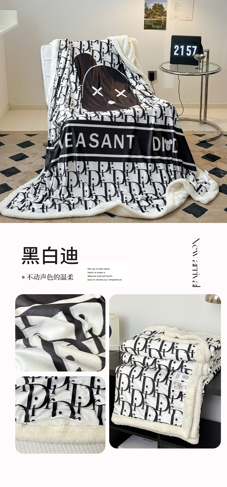 色鬼 2023新款多功能泰迪绒婴儿绒毛毯盖毯子休闲披肩毯 黑白迪
