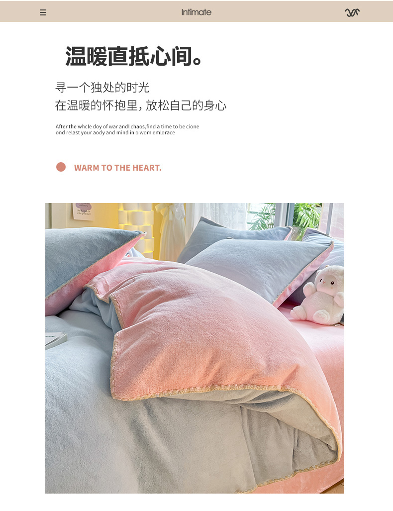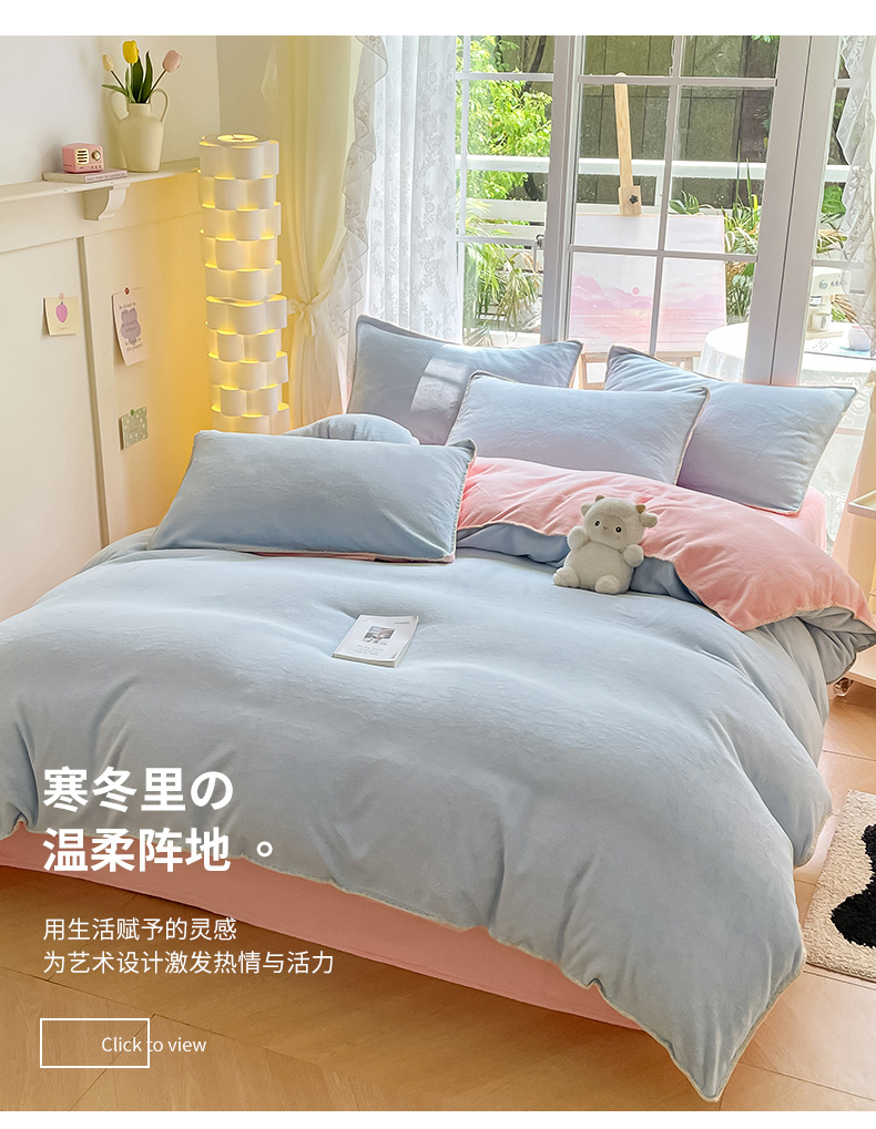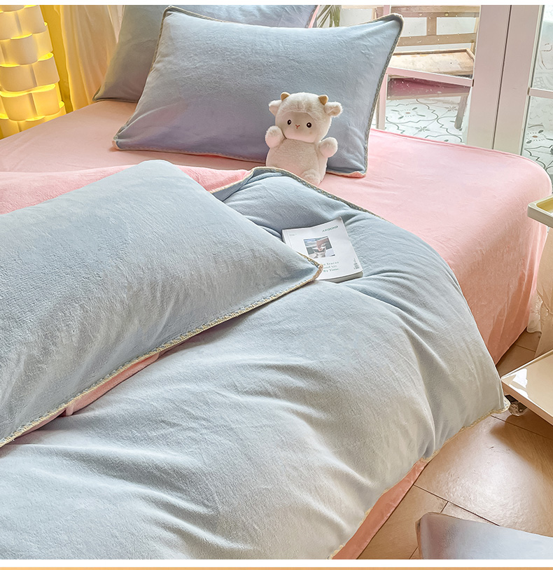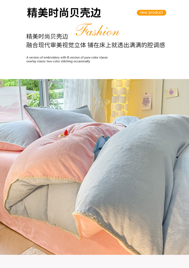 当前位置: 91家纺网 > 商品网购 > 床品套件 > 四件套 > 牛奶绒四件套 > 眠帛 2023新款纯色混搭牛奶绒贝壳边保暖四件套 天空蓝奶油粉