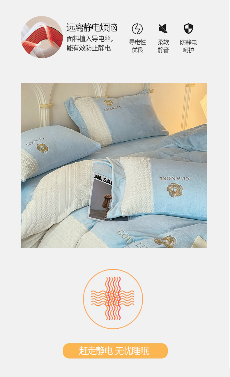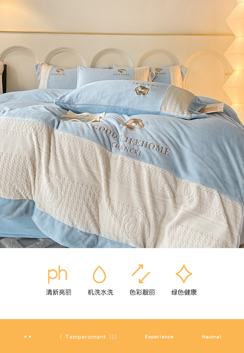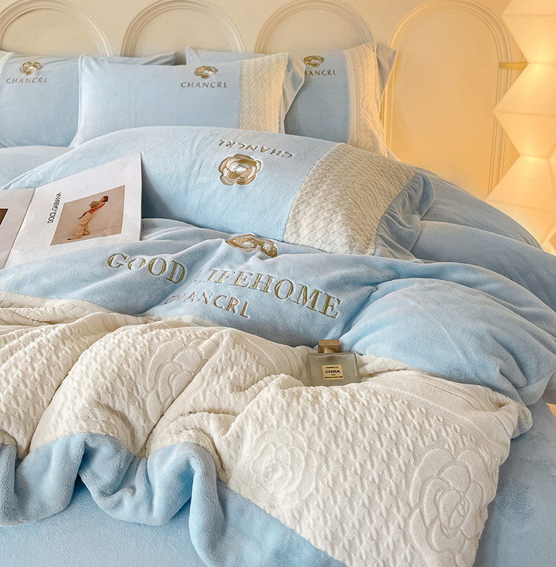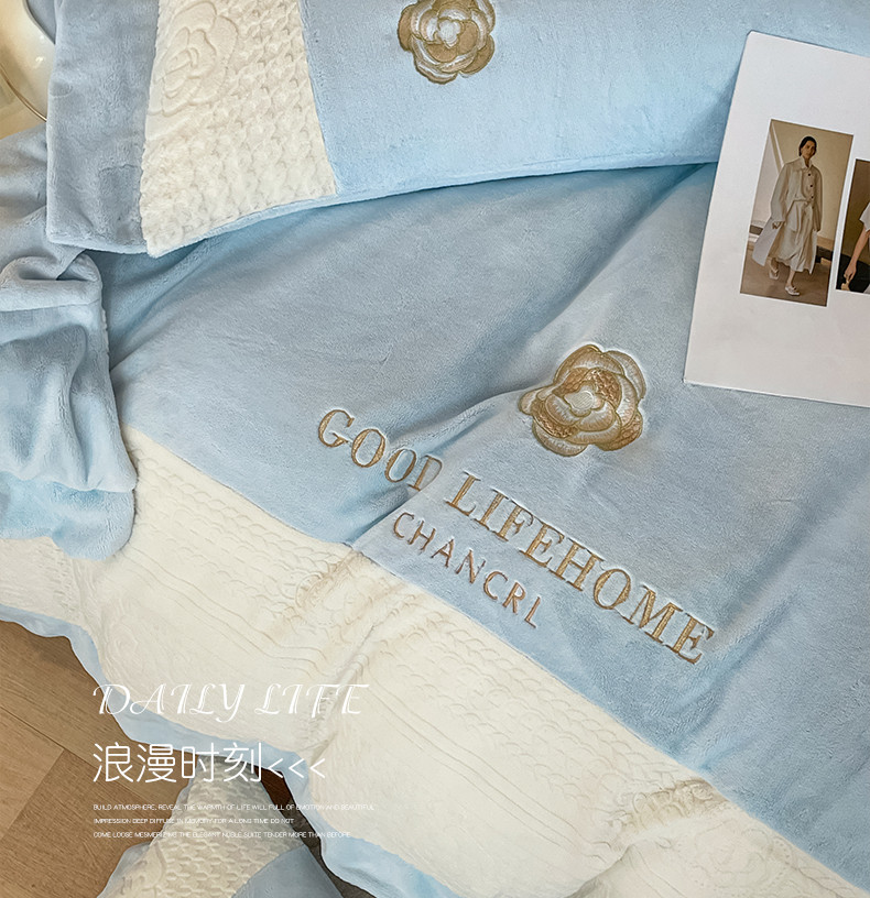 当前位置: 91家纺网 > 商品网购 > 床品套件 > 四件套 > 牛奶绒四件套 > 娜娜 2023新款牛奶绒三拼轻奢风四件套 天空蓝
