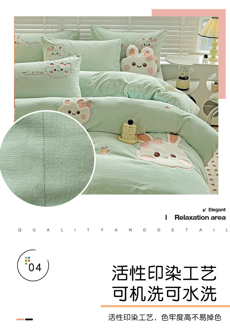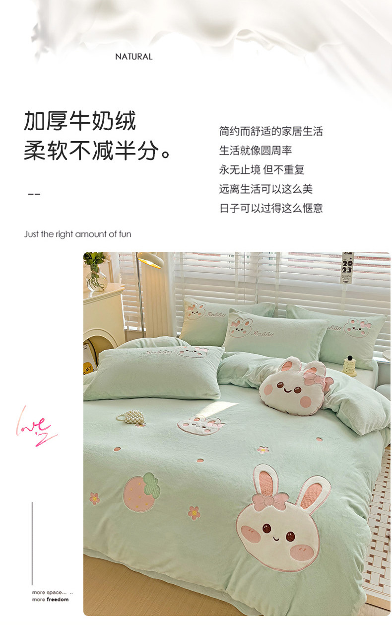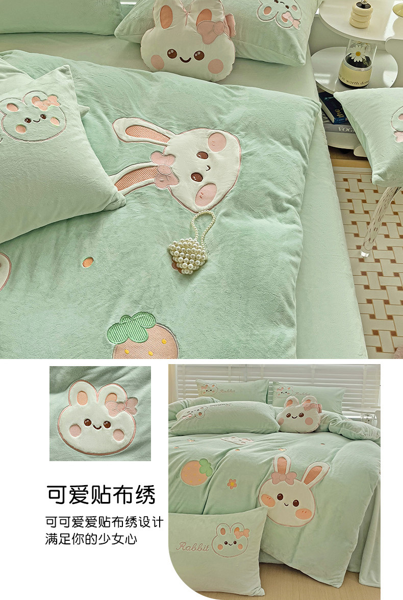 当前位置: 91家纺网 > 商品网购 > 床品套件 > 四件套 > 牛奶绒四件套 > 娜娜 2023新款牛奶绒毛巾绣套件 萌萌兔-繁星蓝