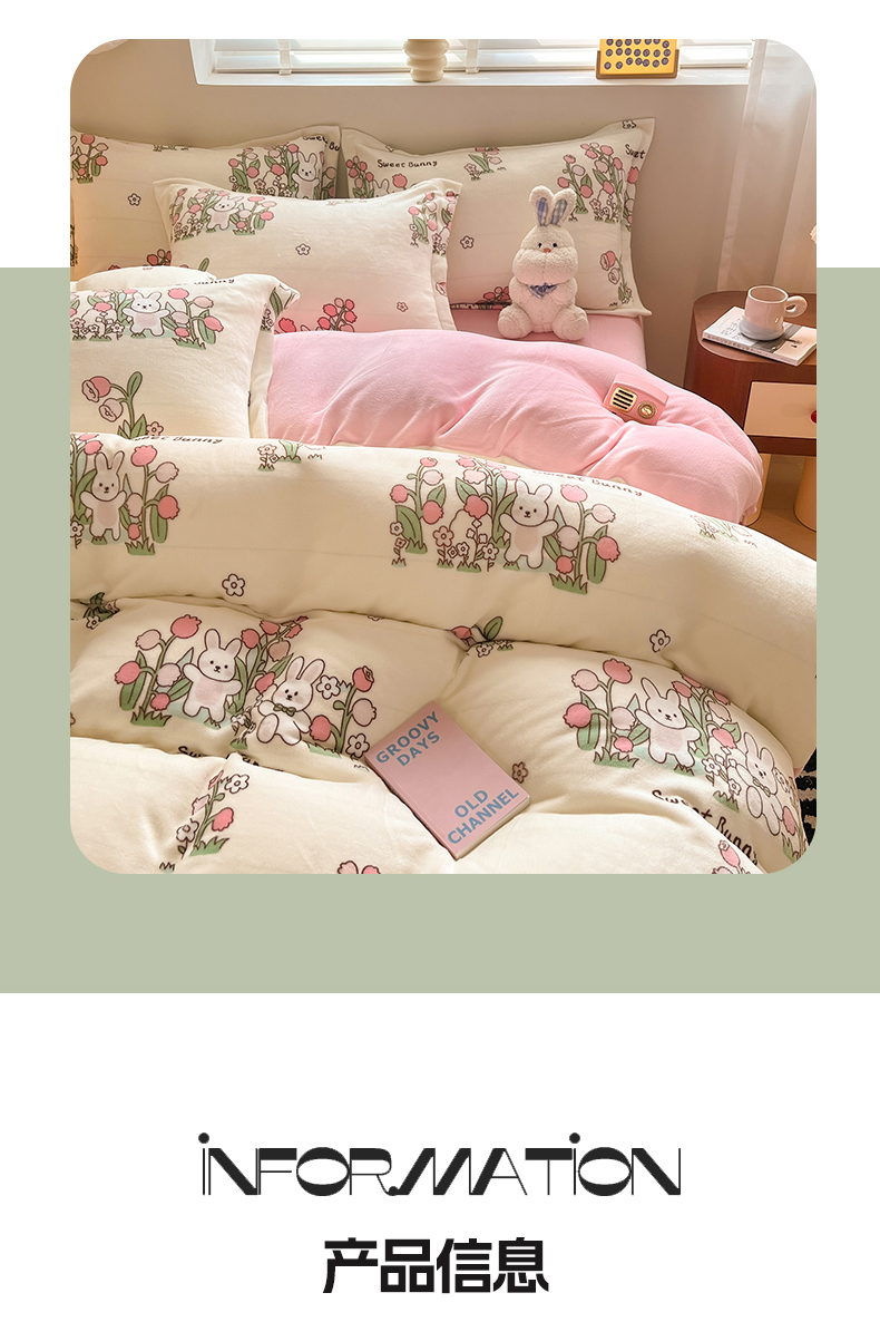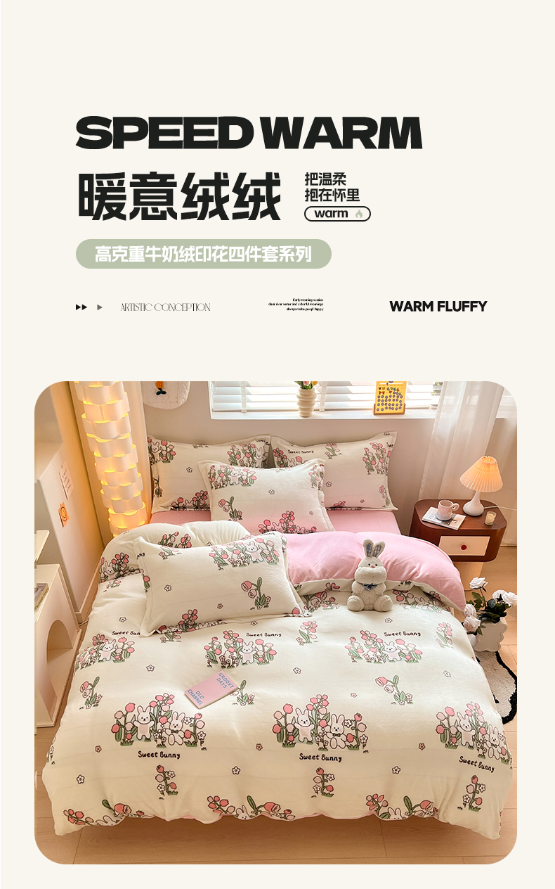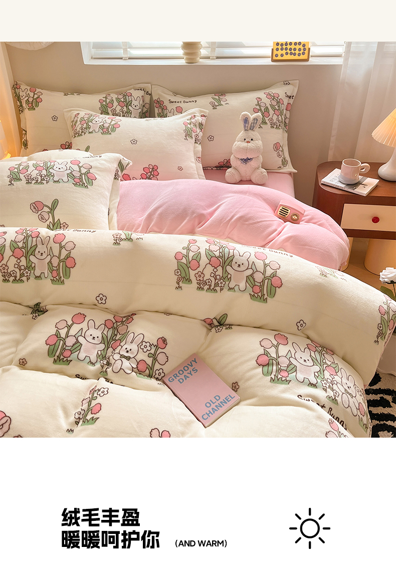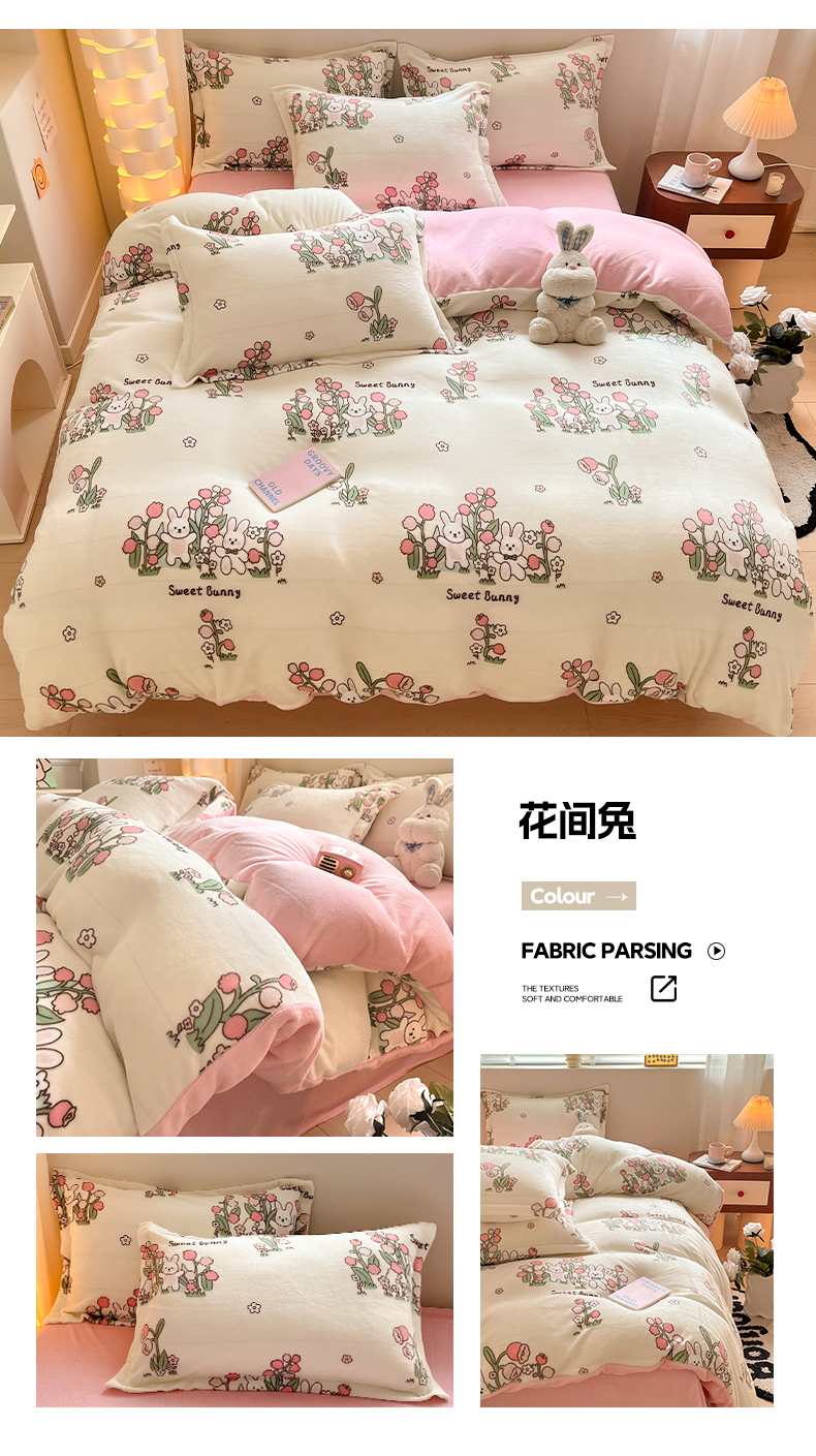 当前位置: 91家纺网 > 商品网购 > 床品套件 > 四件套 > 牛奶绒四件套 > 逸尚阁 2024新款高克重牛奶绒印花四件套(包含买家秀) 花间兔