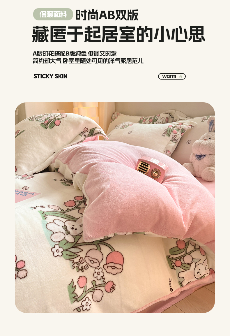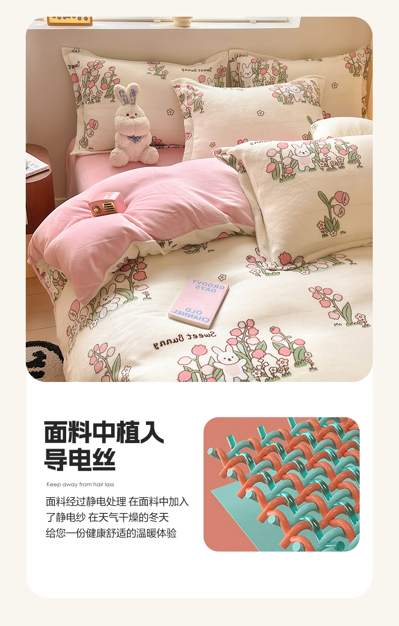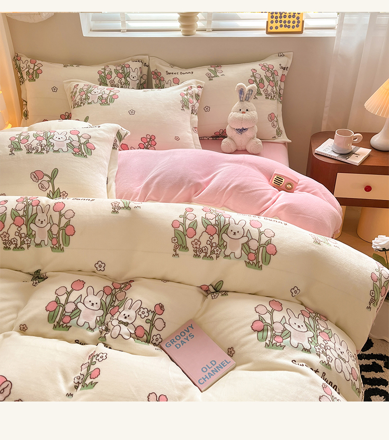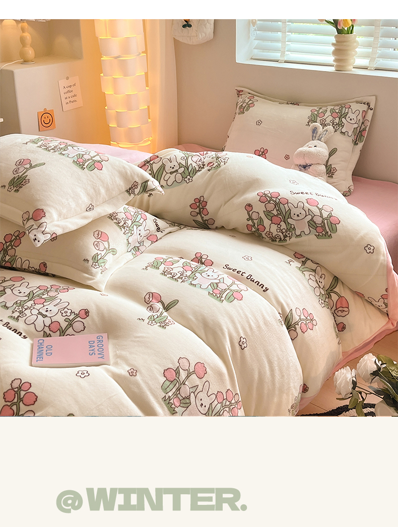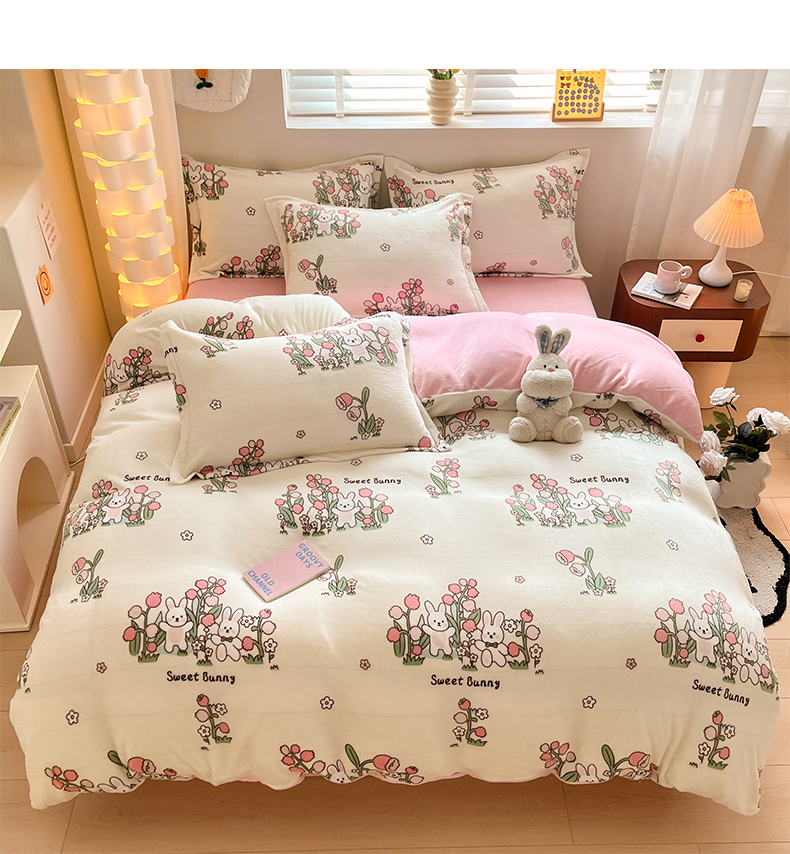 当前位置: 91家纺网 > 商品网购 > 床品套件 > 四件套 > 牛奶绒四件套 > 逸尚阁 2024新款高克重牛奶绒印花四件套(包含买家秀) 花间兔