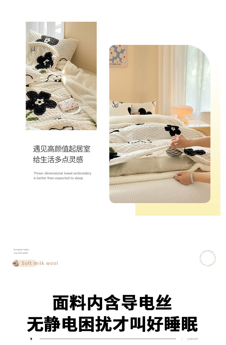 (总)网客家纺 2025新款羊毛绒牛奶绒夹棉床盖四件套,豹点-深灰,简格-黑色,简格-咖色,空间-红色,泥点-灰色,泥点-咖色,维奥-灰色,斜格-灰色,斜格-墨绿
