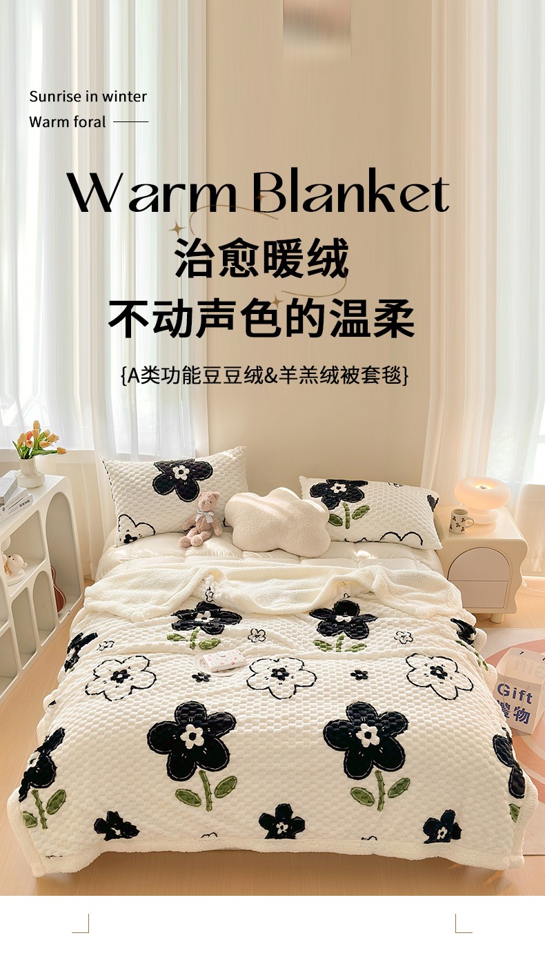 网客 豆豆绒印花被套毯 墨花