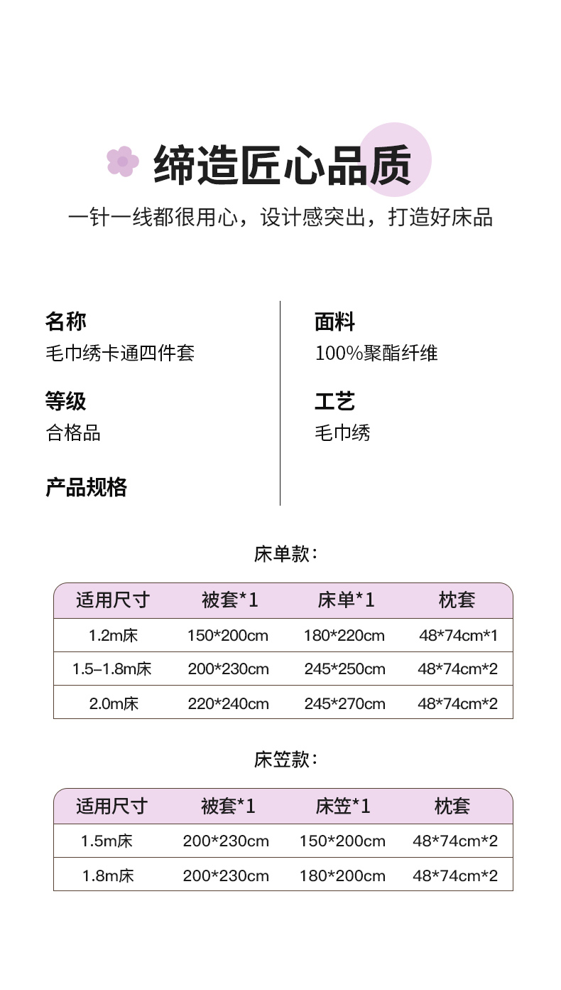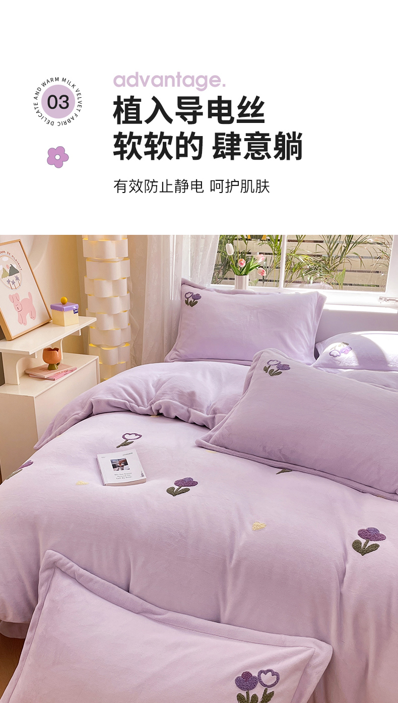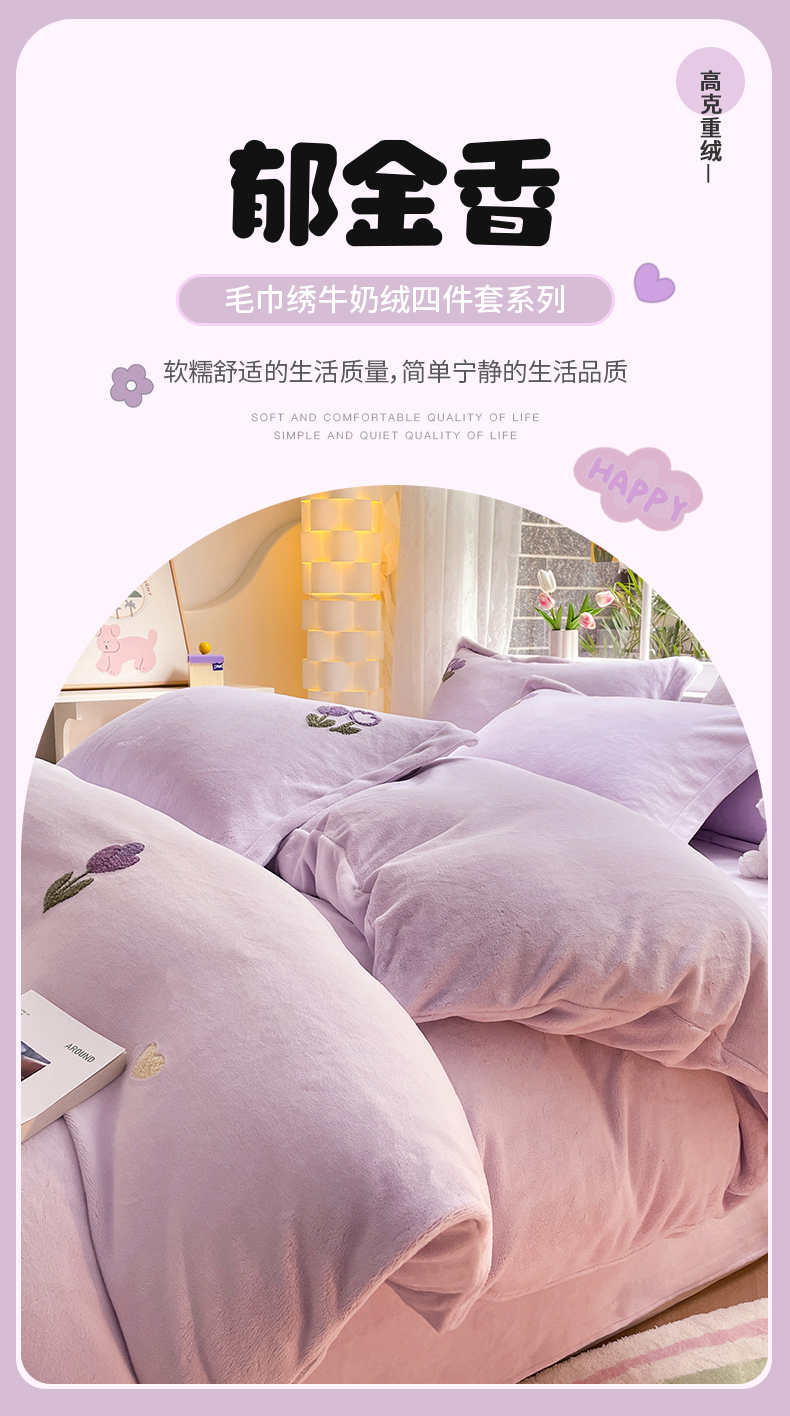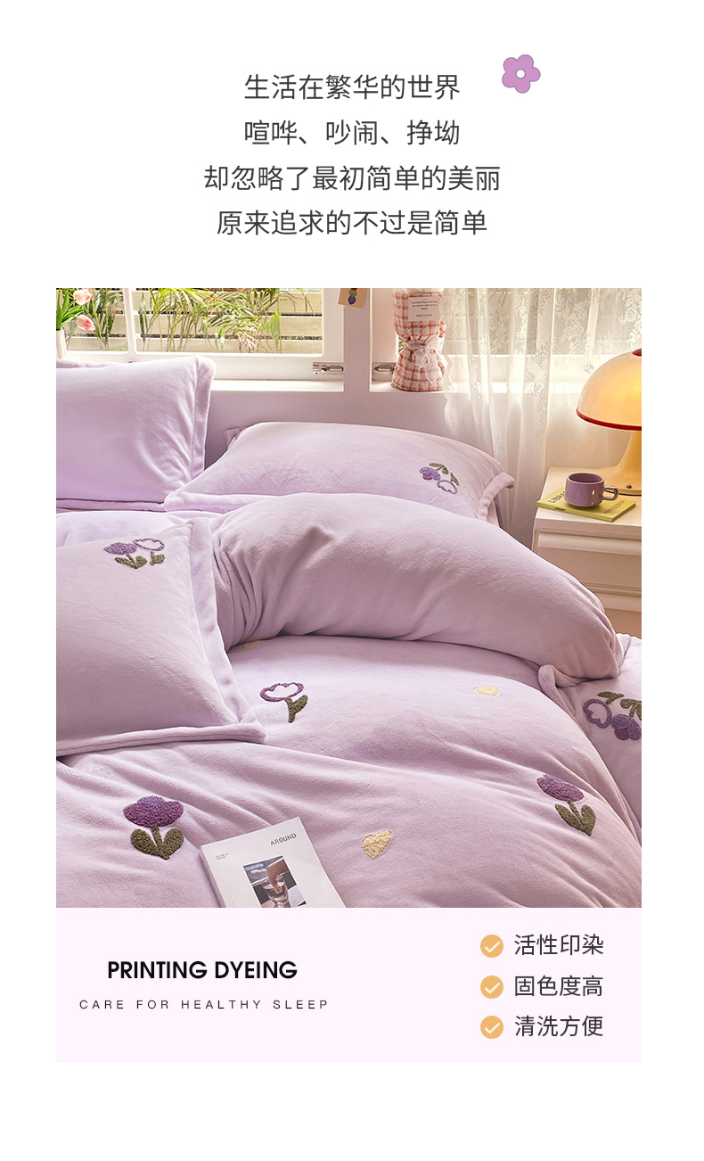 商品名称:丽美人家纺 2023新款毛巾绣绒四件套 郁金香A