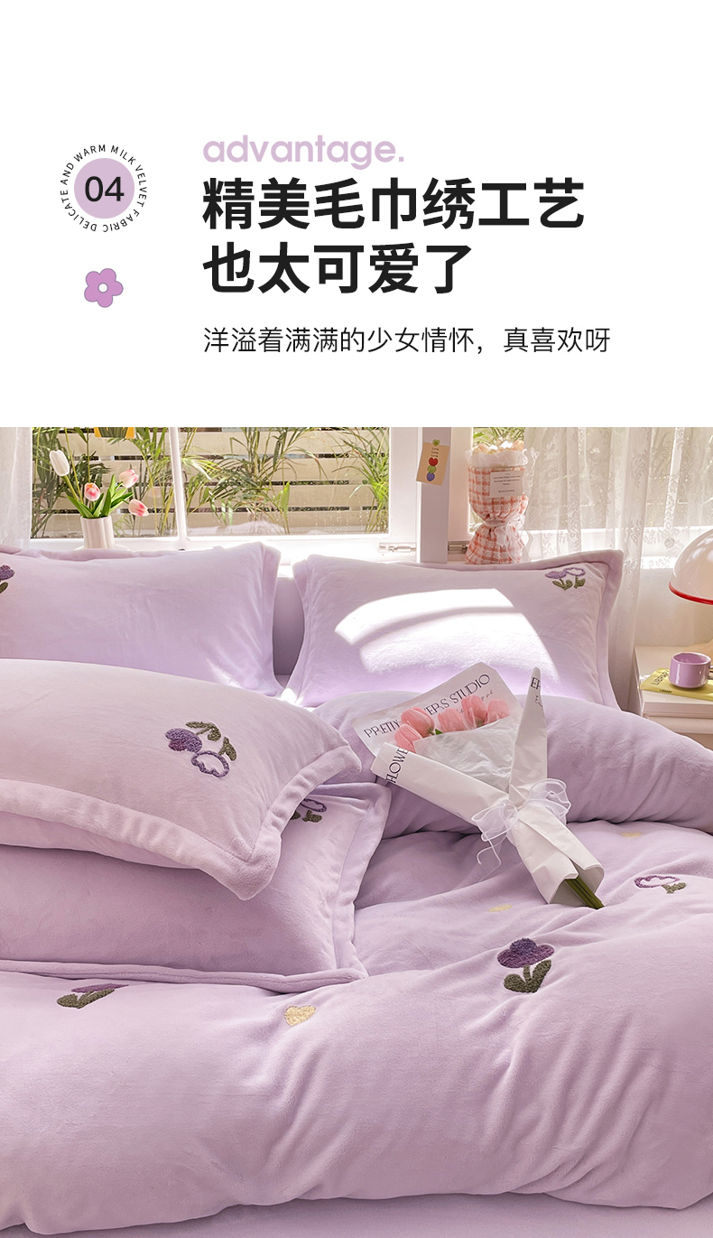 丽美人家纺 2023新款毛巾绣绒四件套 郁金香A
