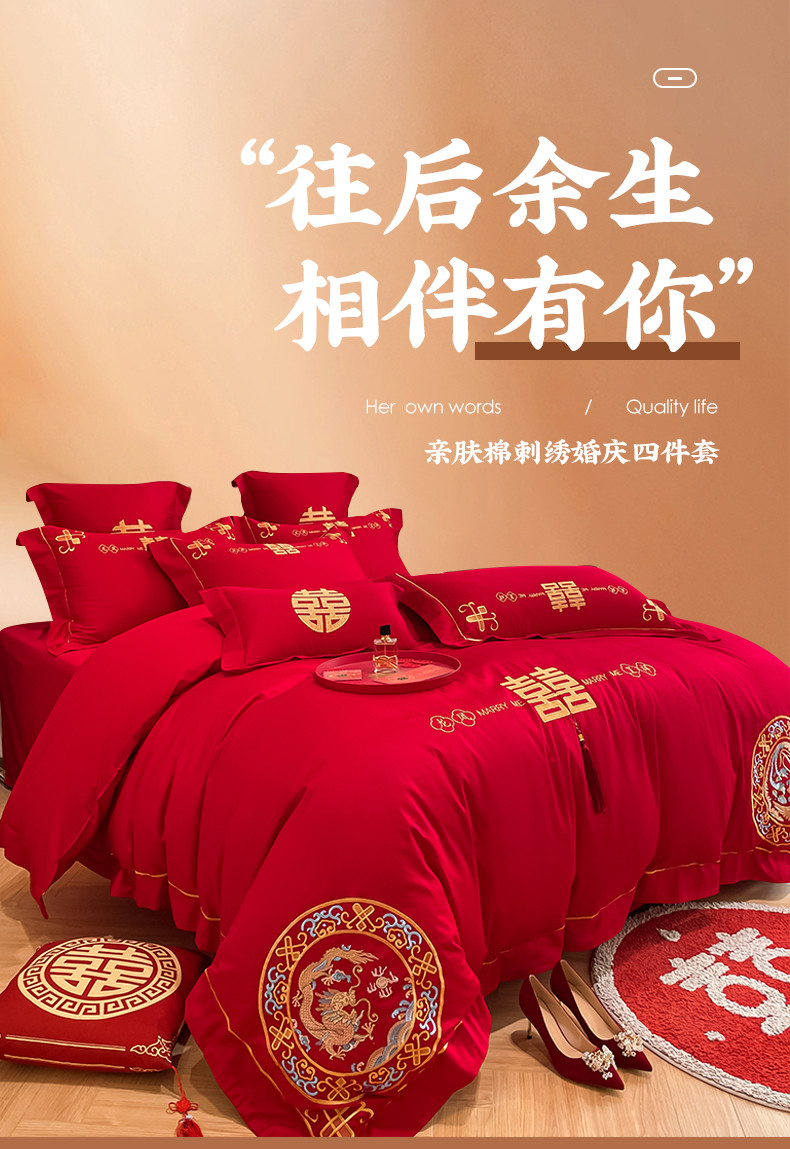 (总)欧乐蒂 2025新款全棉刺绣婚庆四件套,佳偶天成,龙凤和美,龙姿凤彩,玫瑰恋人,倾城之恋,双囍临门,甜蜜爱情,囍结良缘