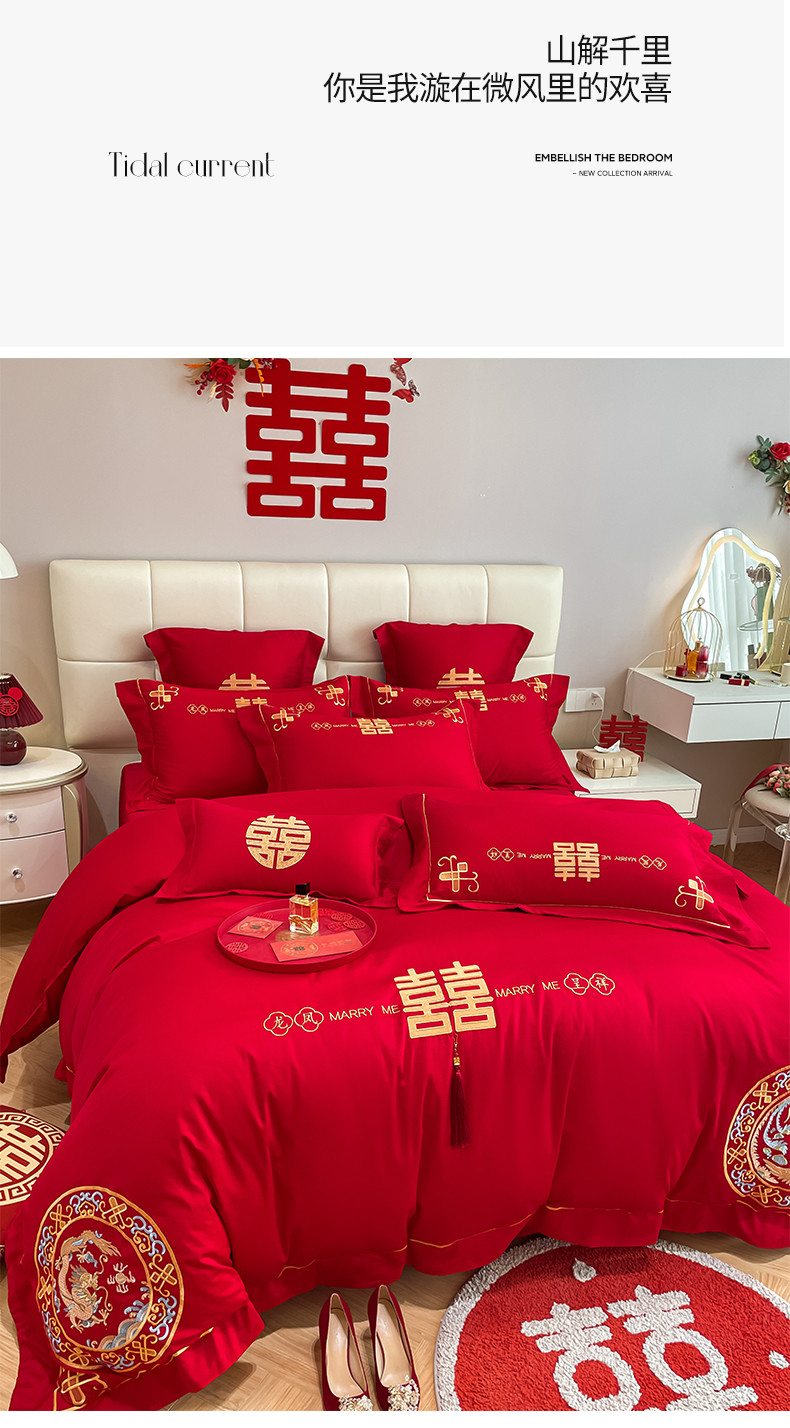 (总)欧乐蒂 2025新款设计师原创亲肤棉婚庆四件套,云喜东方,双喜临门,喜乐,喜事连连,爱恋,玫瑰爱恋,花开富贵,金枝玉叶,锦绣佳缘,龙姿风采
