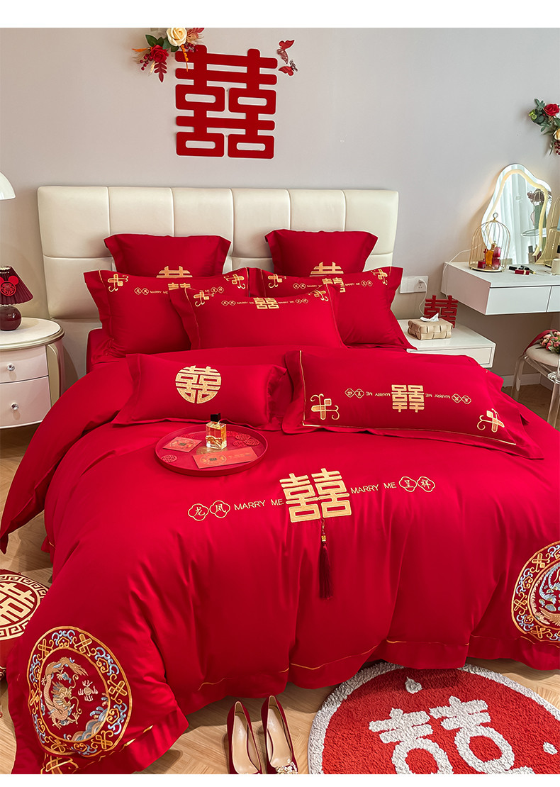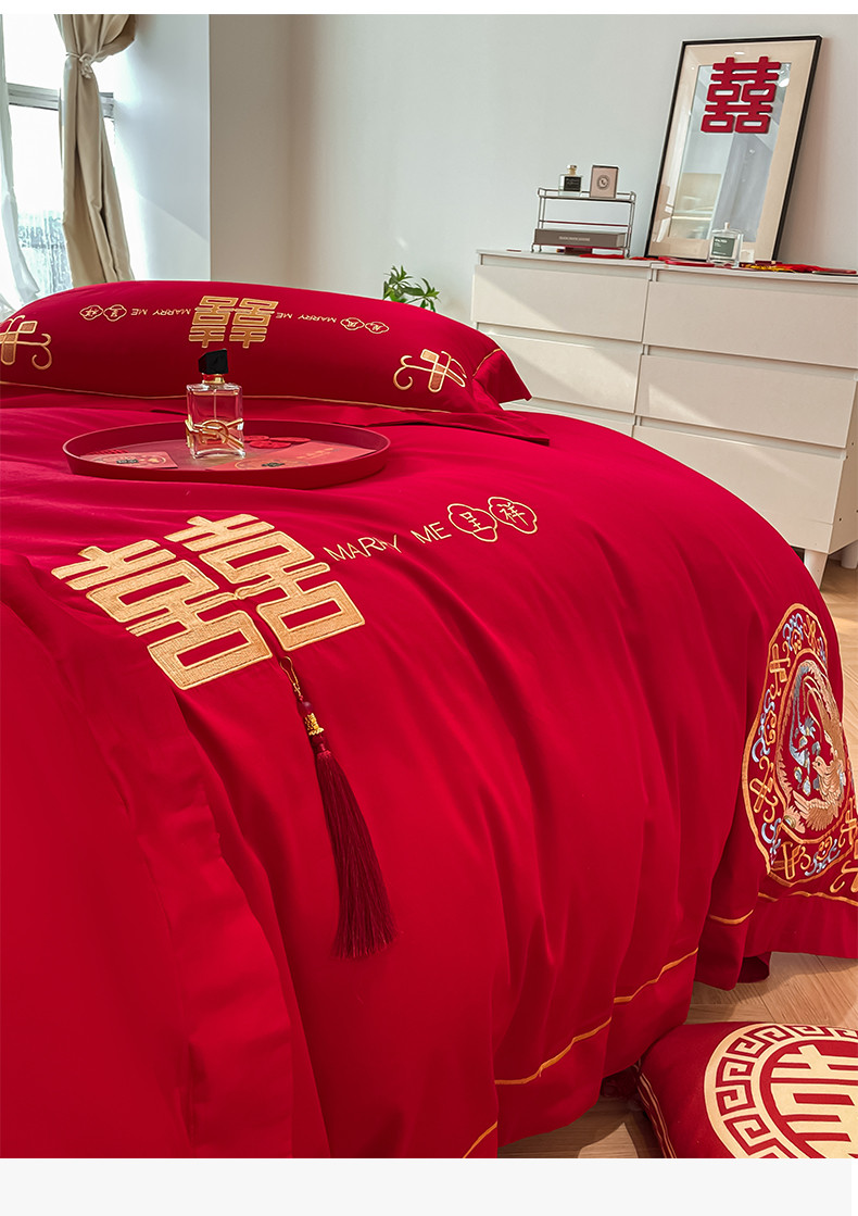 (总)欧乐蒂 2025新款婚庆款牛奶绒刺绣系列四件套-爱相随,爱相随-喜红,爱相随-金