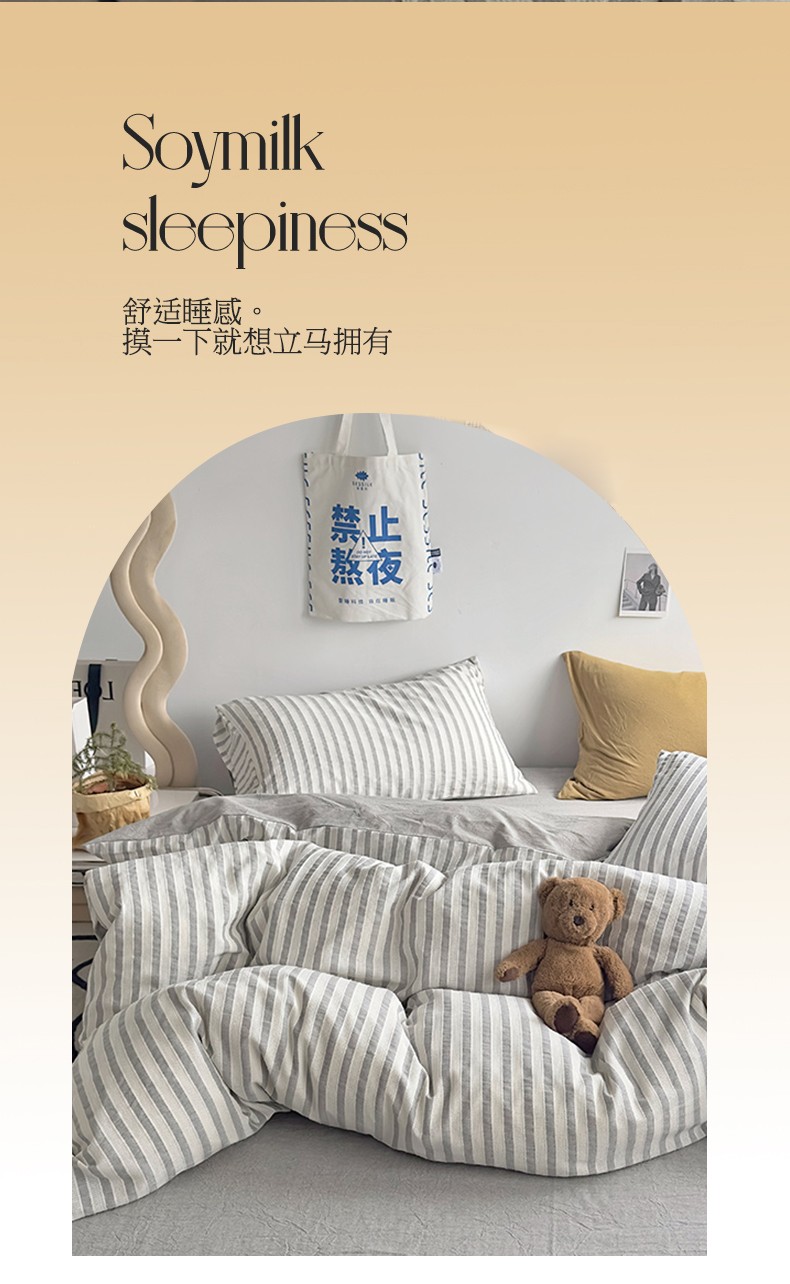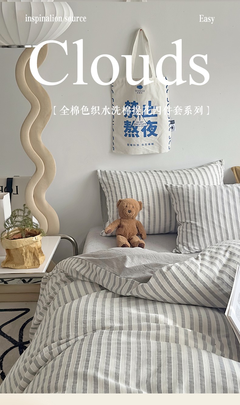 (总)2024秋冬新款A类简约日系全棉色织水洗棉纯棉四件套,粉密条,灰密条,绿密条,米密条,米雅,沐妍-粉,沐妍-黄,沐妍-灰,沐妍-绿,日落-粉,日落-灰,日落绿,中古绿条