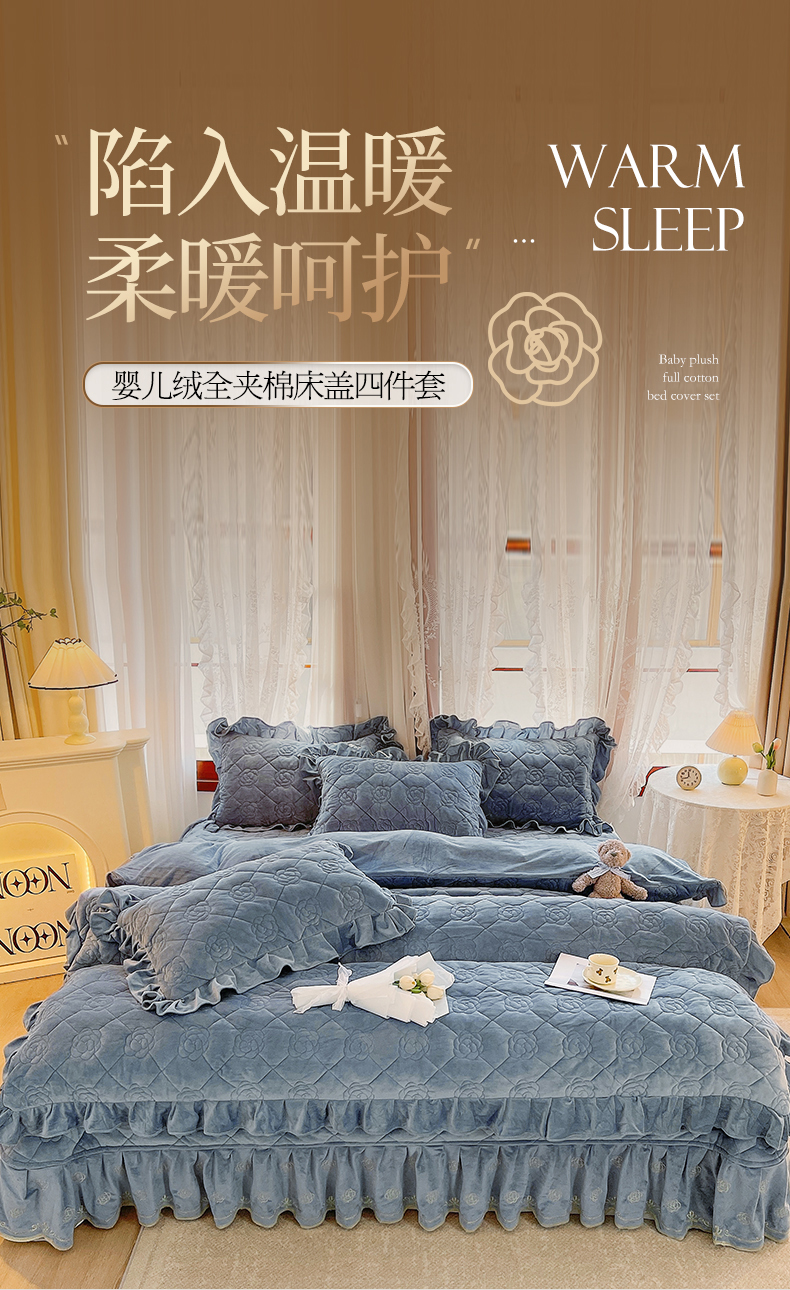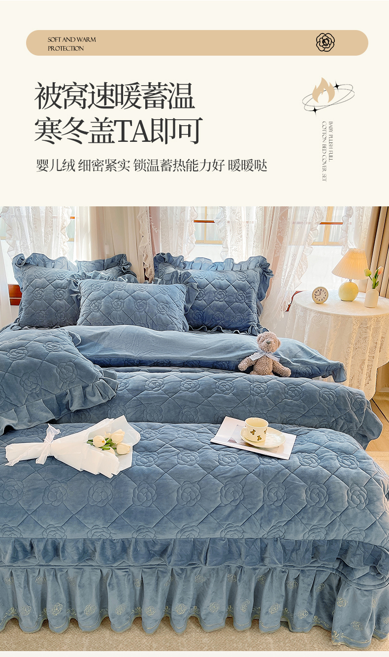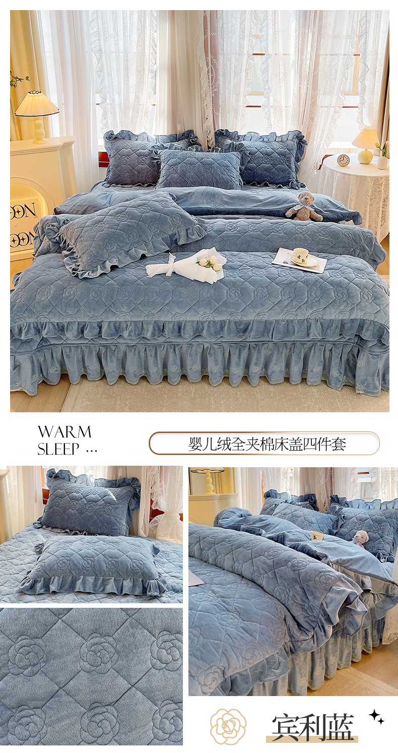 当前位置: 91家纺网 > 商品网购 > 床品套件 > 四件套 > 宜凡2023新款婴儿绒全夹棉床盖四件套 宾利蓝