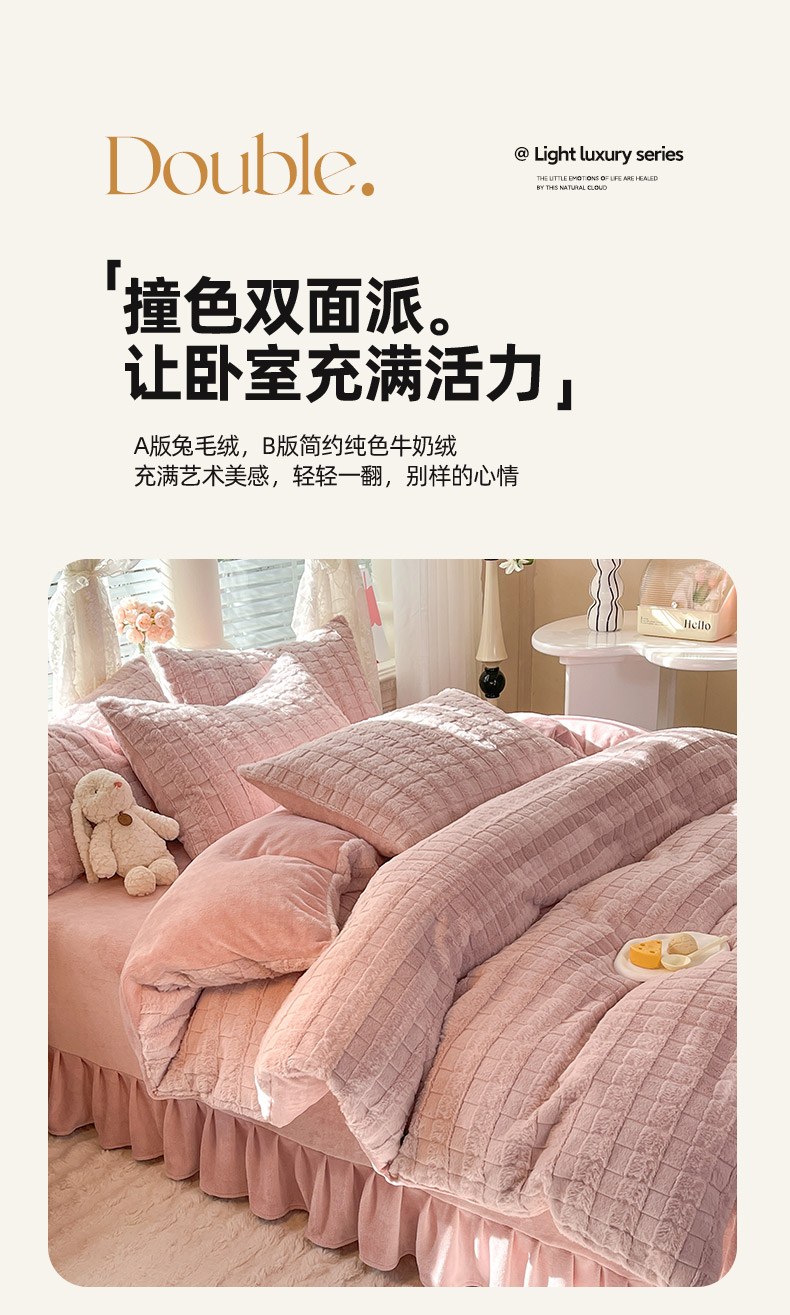 丝印良品 2023新款高克重兔绒牛奶绒四件套 奶油粉