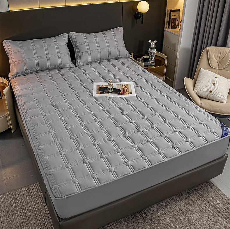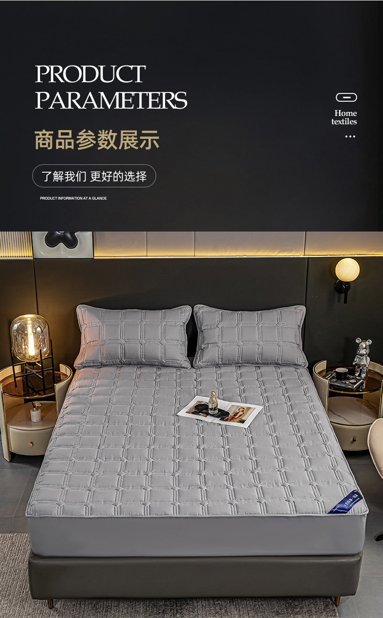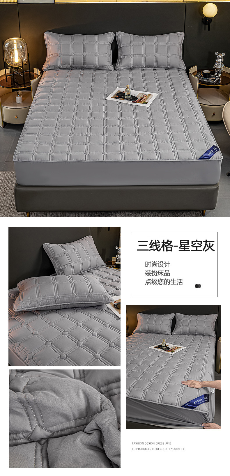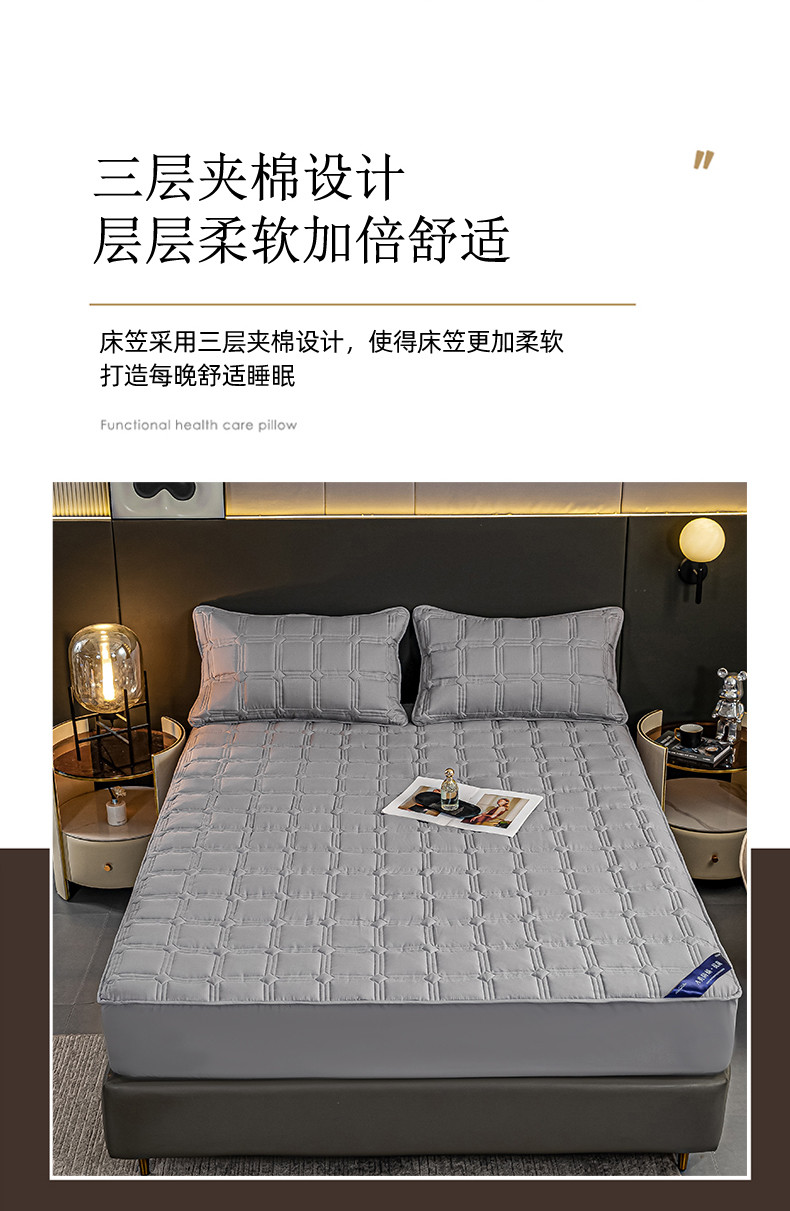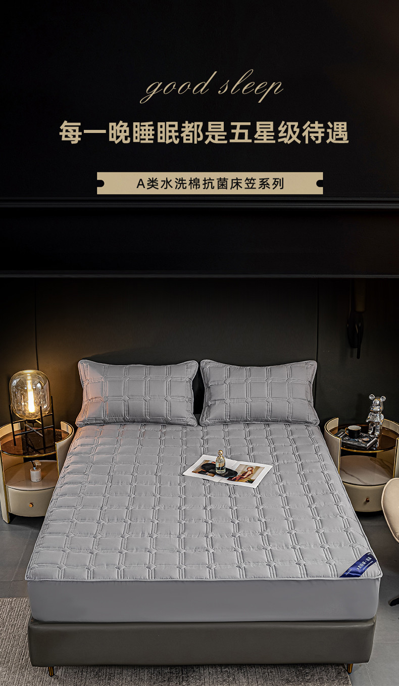 X猫先生床笠 A类水洗棉五星级酒店抗菌夹棉床笠加高加厚床垫保护罩 三线格-星空灰