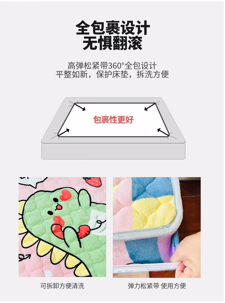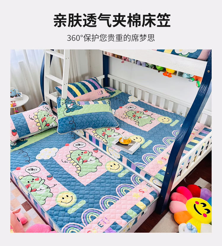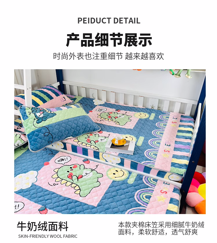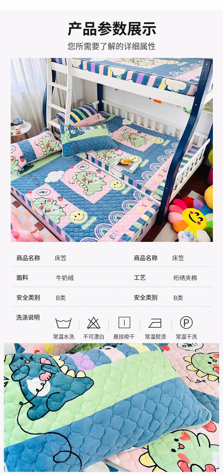 • 91家纺网 家纺一手货源 找家纺 小虾米 2023新款上下床加厚牛奶绒夹棉床笠 恐龙宝宝