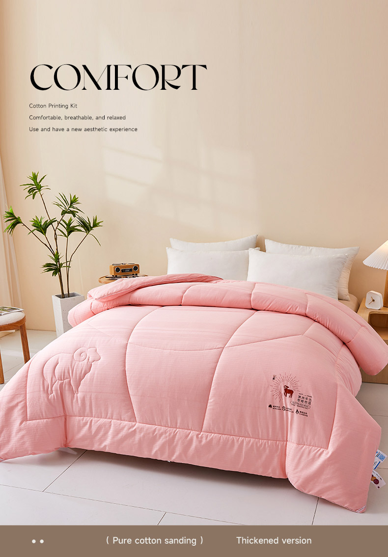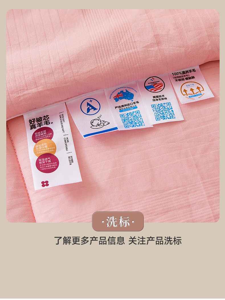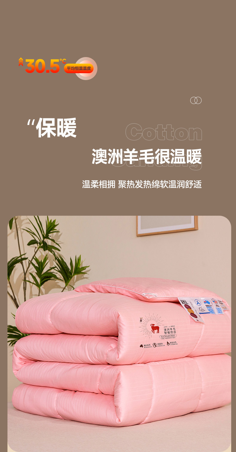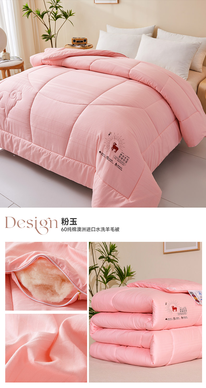 • 91家纺网 家纺一手货源 找家纺 薇玛仕 2023新款澳洲羊毛纯棉羊毛被 被子被芯 粉玉