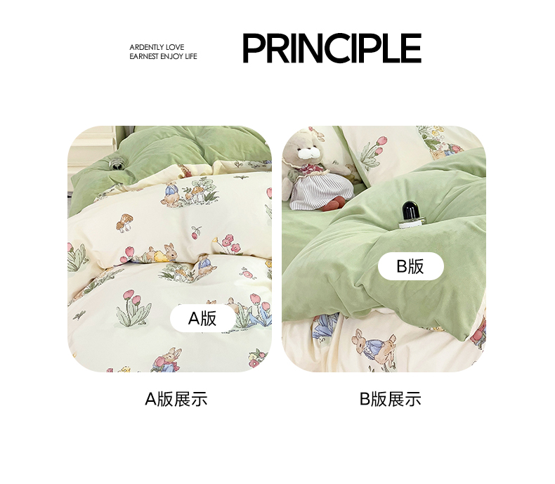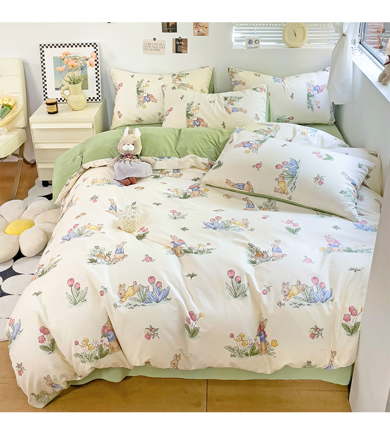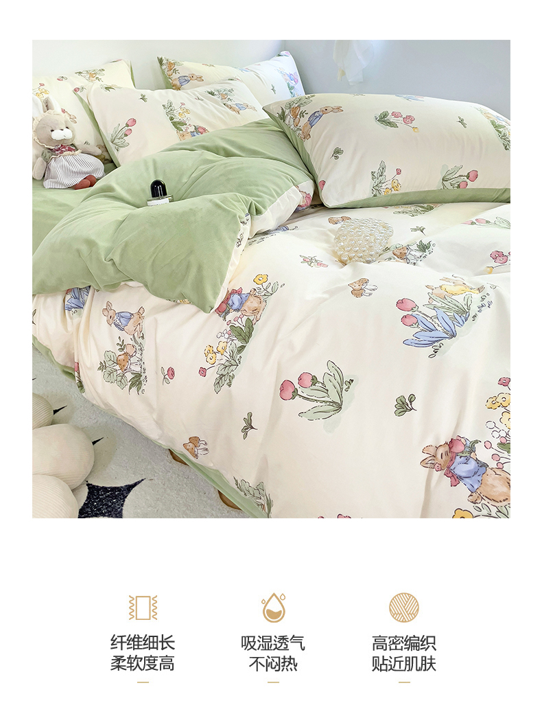 商品名称:盛馨家纺 2023新款棉加绒A版高支高密13372全棉加B版加厚宝宝绒牛奶绒床单床笠四件套 兔野仙踪