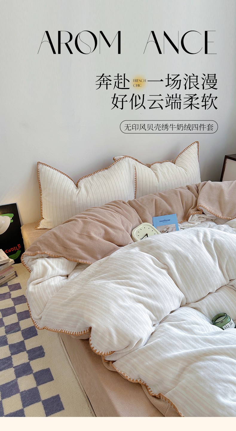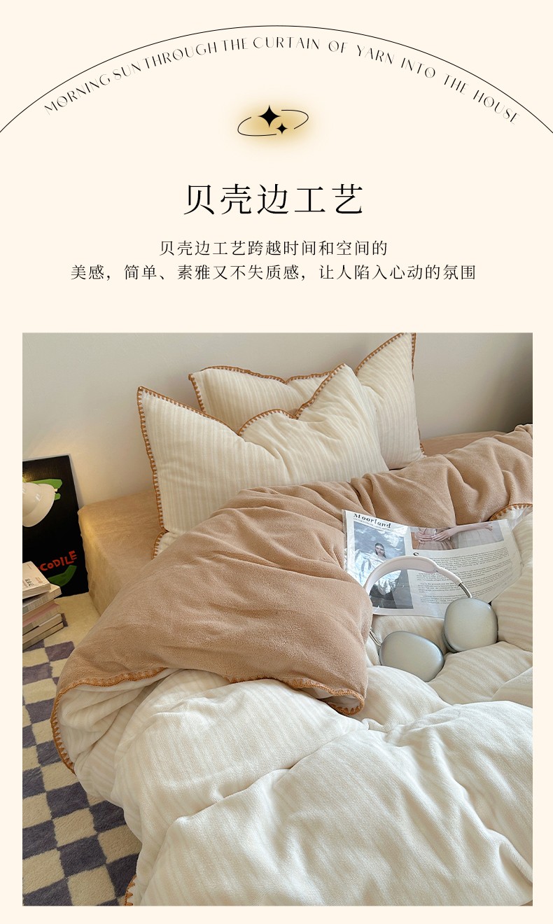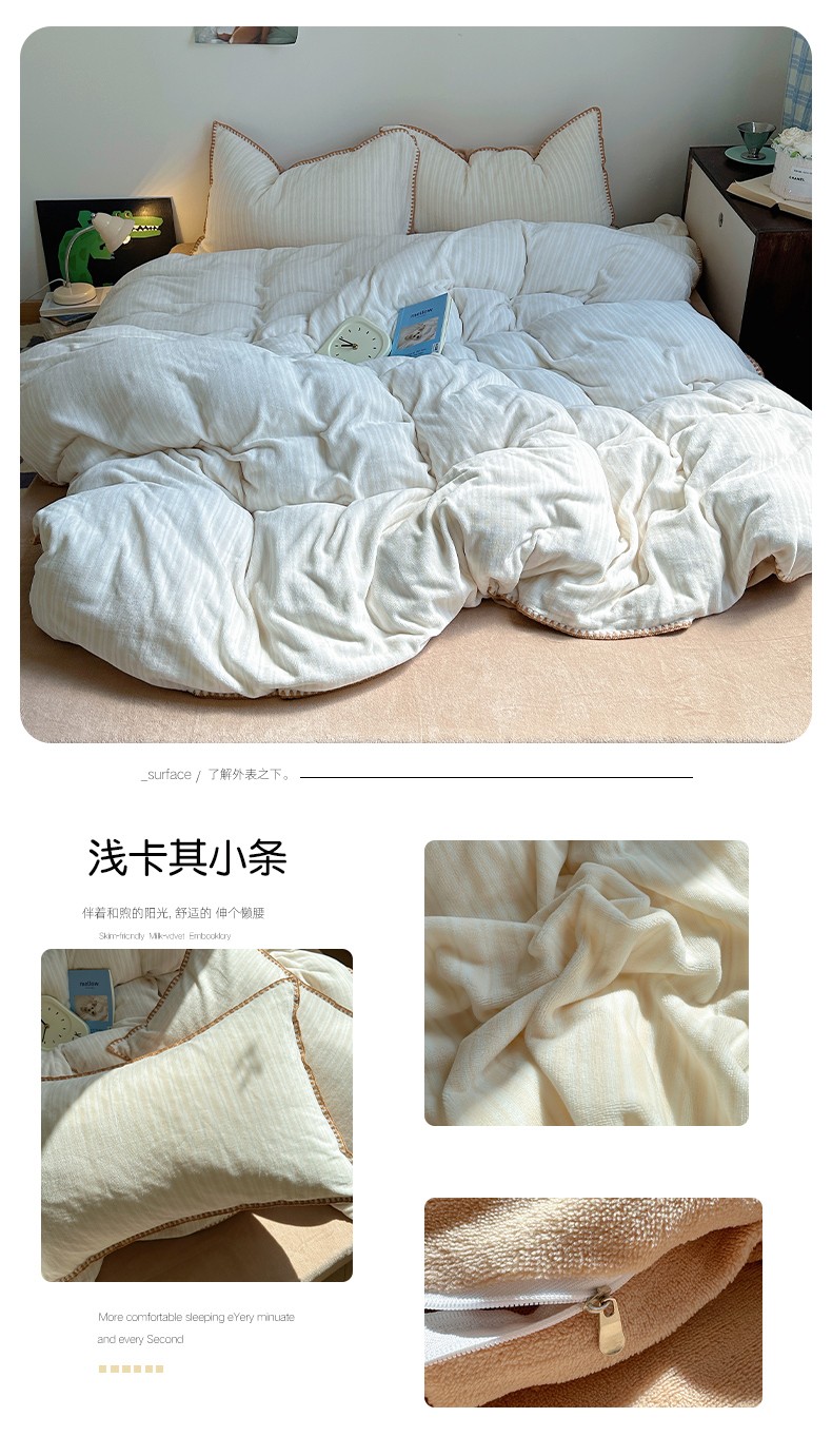 商品名称:三朵 2023新款无印风牛奶绒四件套 浅卡其小条