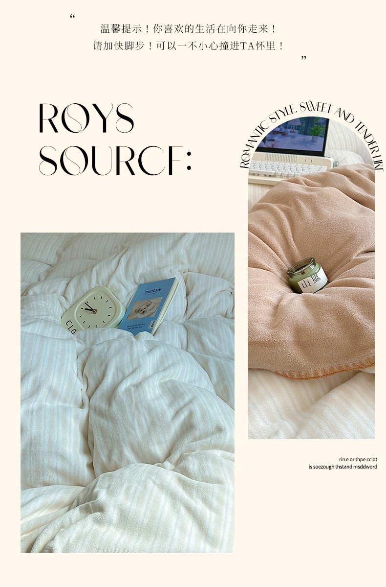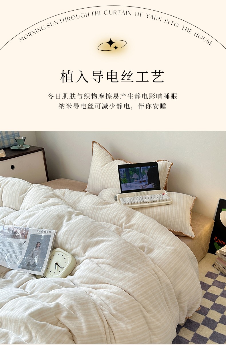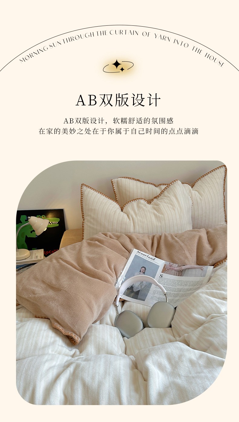 商品名称:三朵 2023新款无印风牛奶绒四件套 浅卡其小条