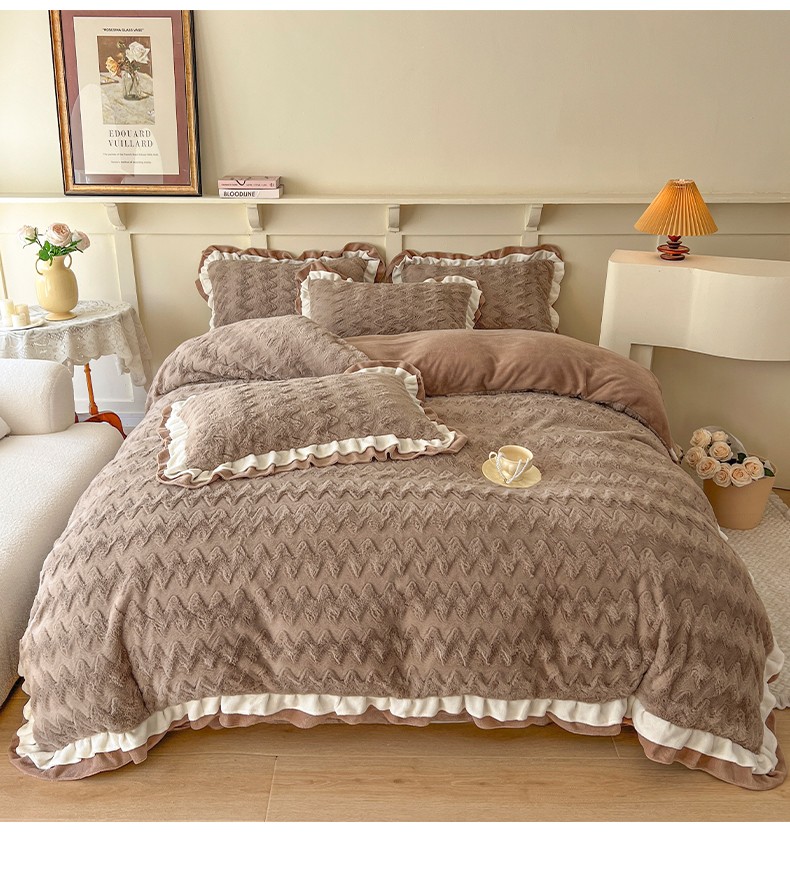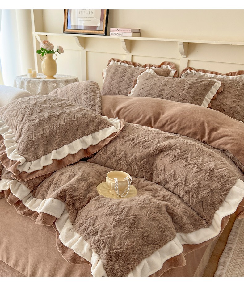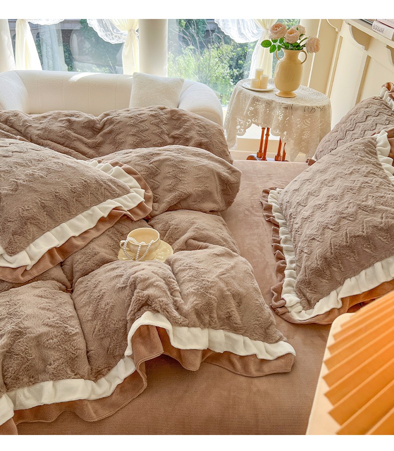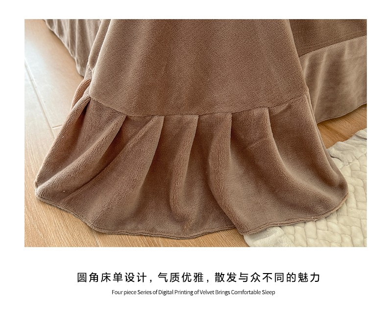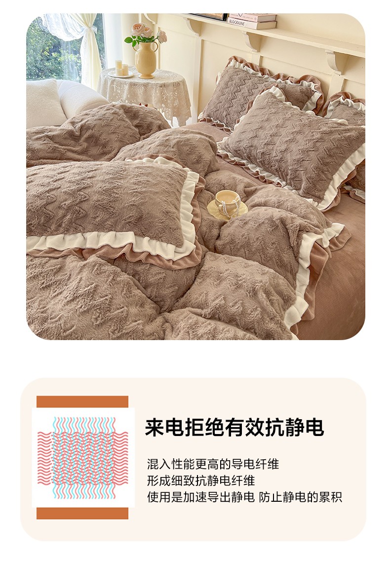 商品名称:麒豆豆 2023新款A版兔毛绒B版素色牛奶绒四件套-织梦 织梦-奶酪咖