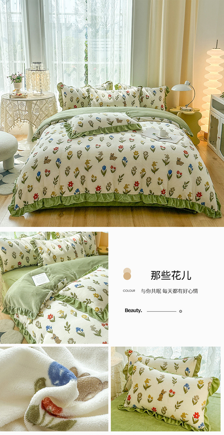 当前位置: 91家纺网 > 商品网购 > 床品套件 > 四件套 > 牛奶绒四件套 > 小主驾到 2023新款高克重韩版牛奶绒花边四件套那些花儿