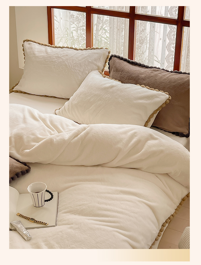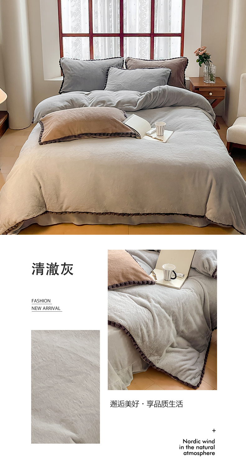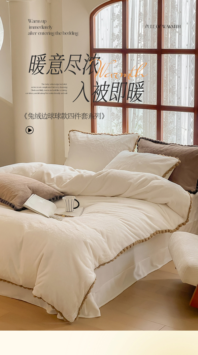(总)名品优仓 2023新款高克重兔绒边带球球款四件套