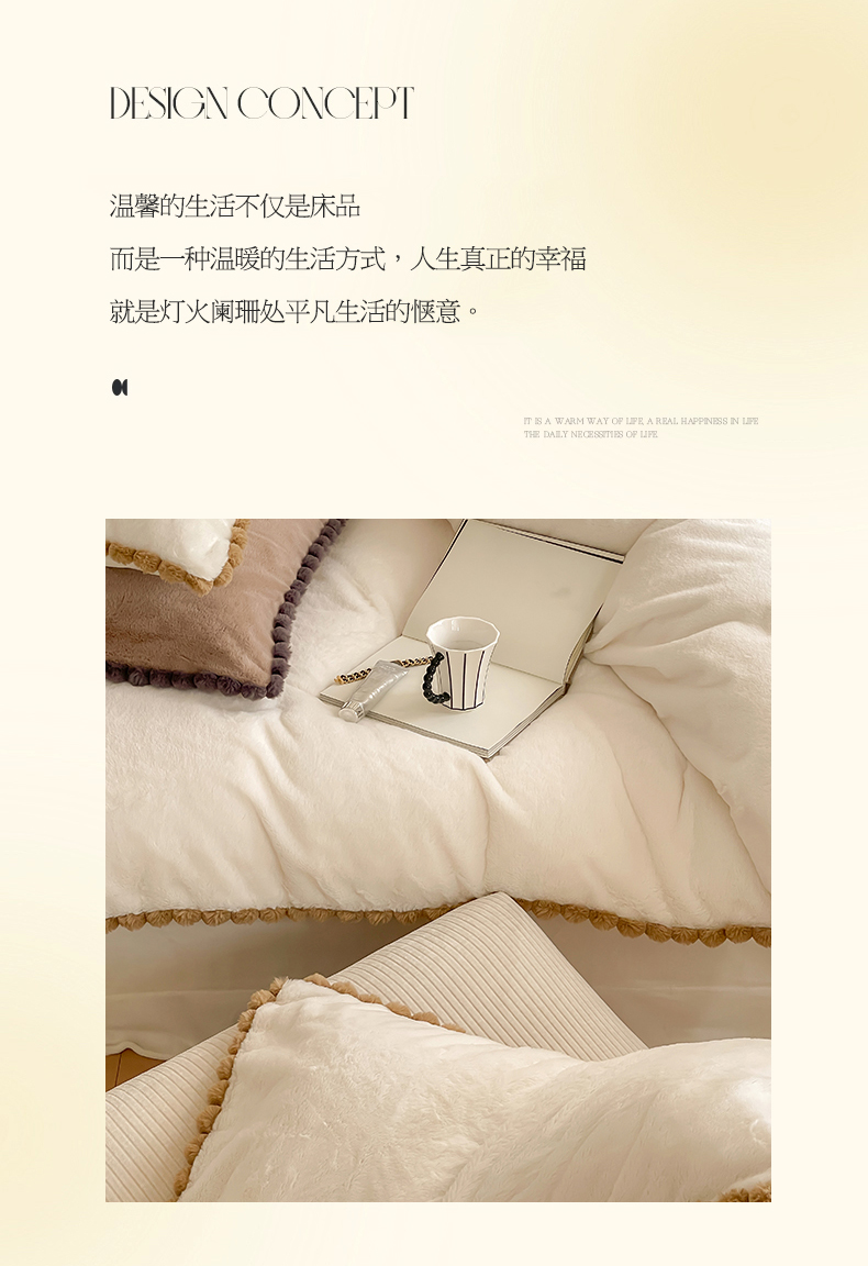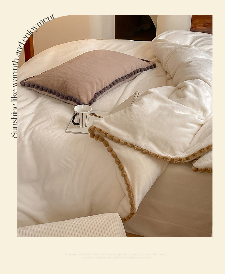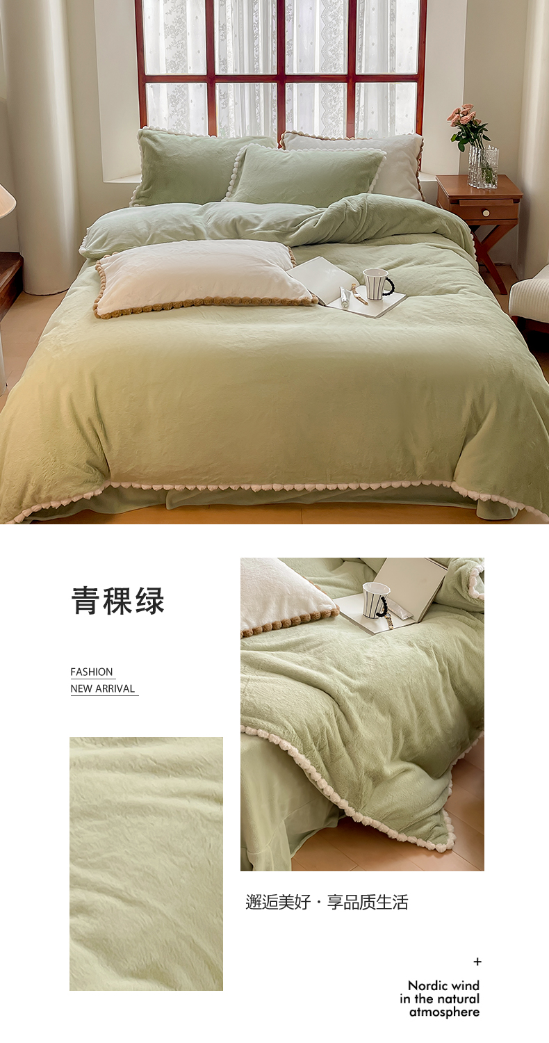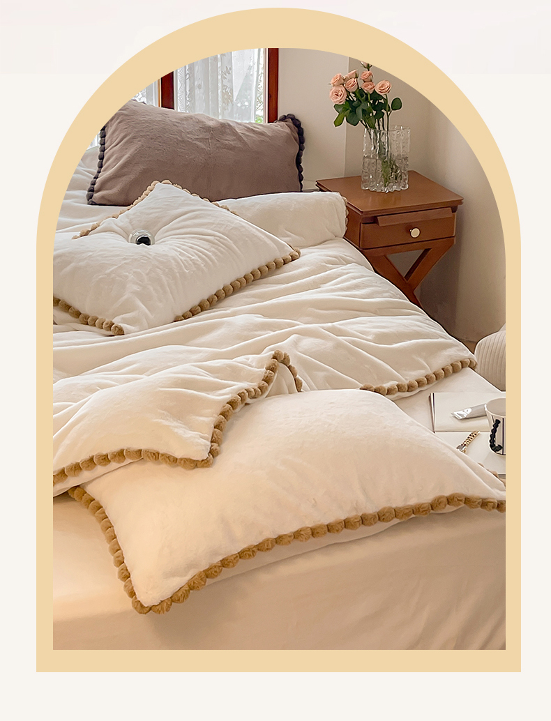 (总)名品优仓 2023新款高克重兔绒边带球球款四件套