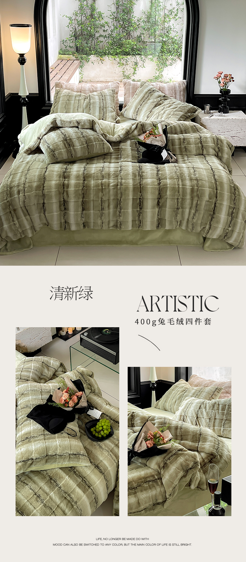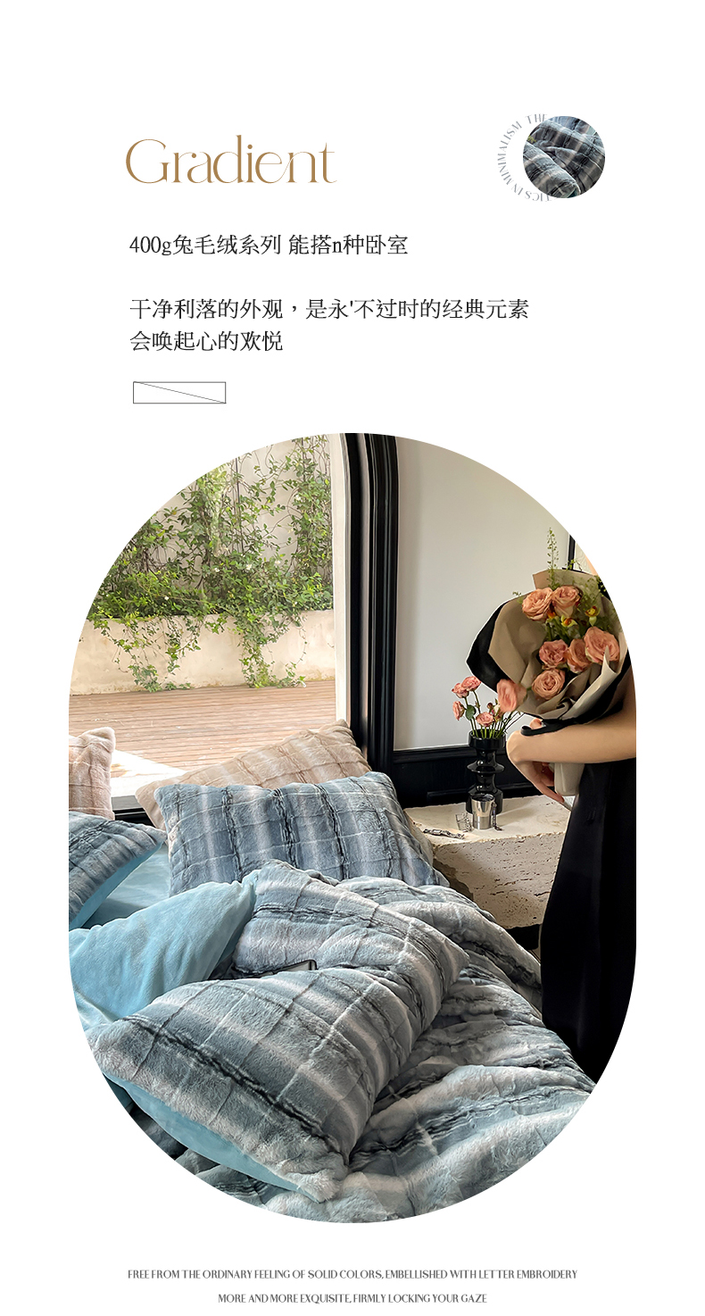 (总)名品优仓 2023新款400g兔毛绒四件套-维也纳