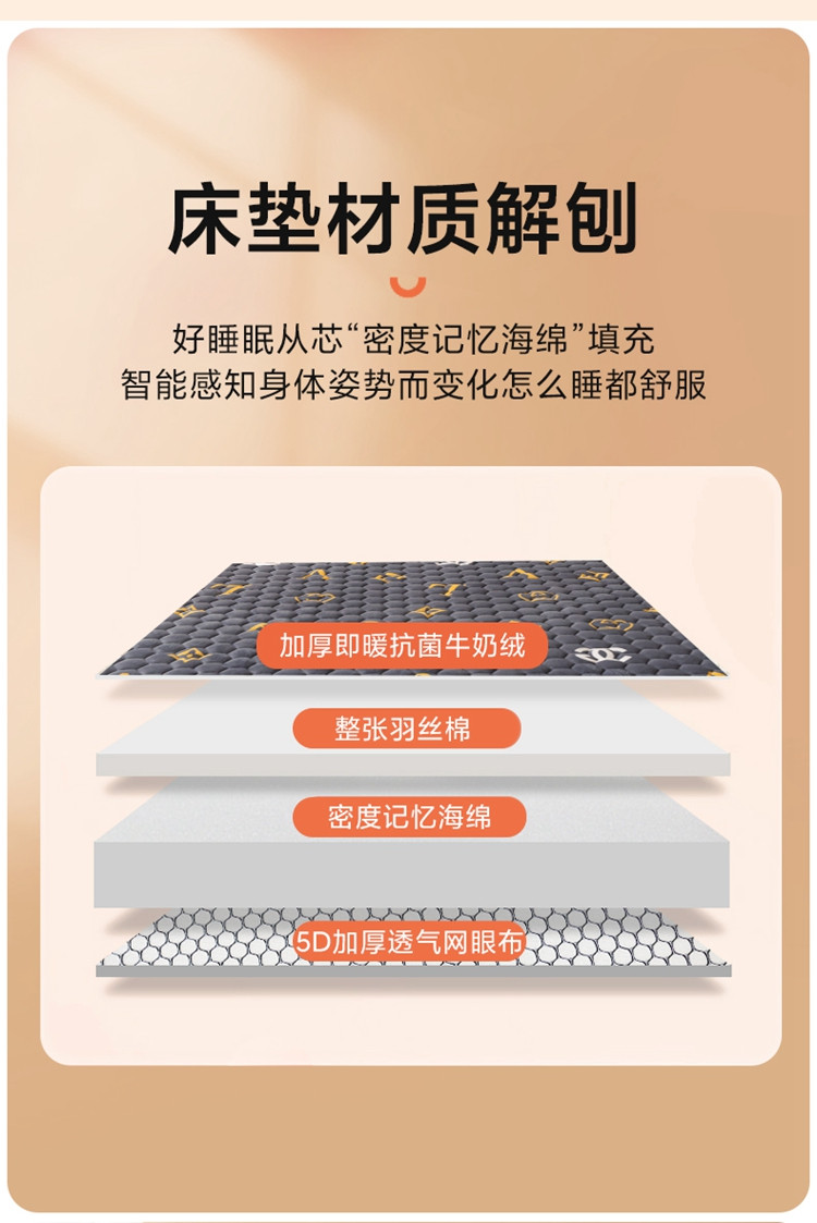 当前位置: 91家纺网 > 商品网购 > 床垫/床褥 > 普通床垫 > 元昊 2025新款加厚即暖抗菌牛奶绒记忆棉床垫 贵族气质