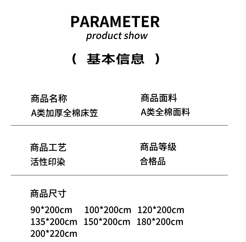 单床笠200x220cm高28cm | ¥46.00 |
