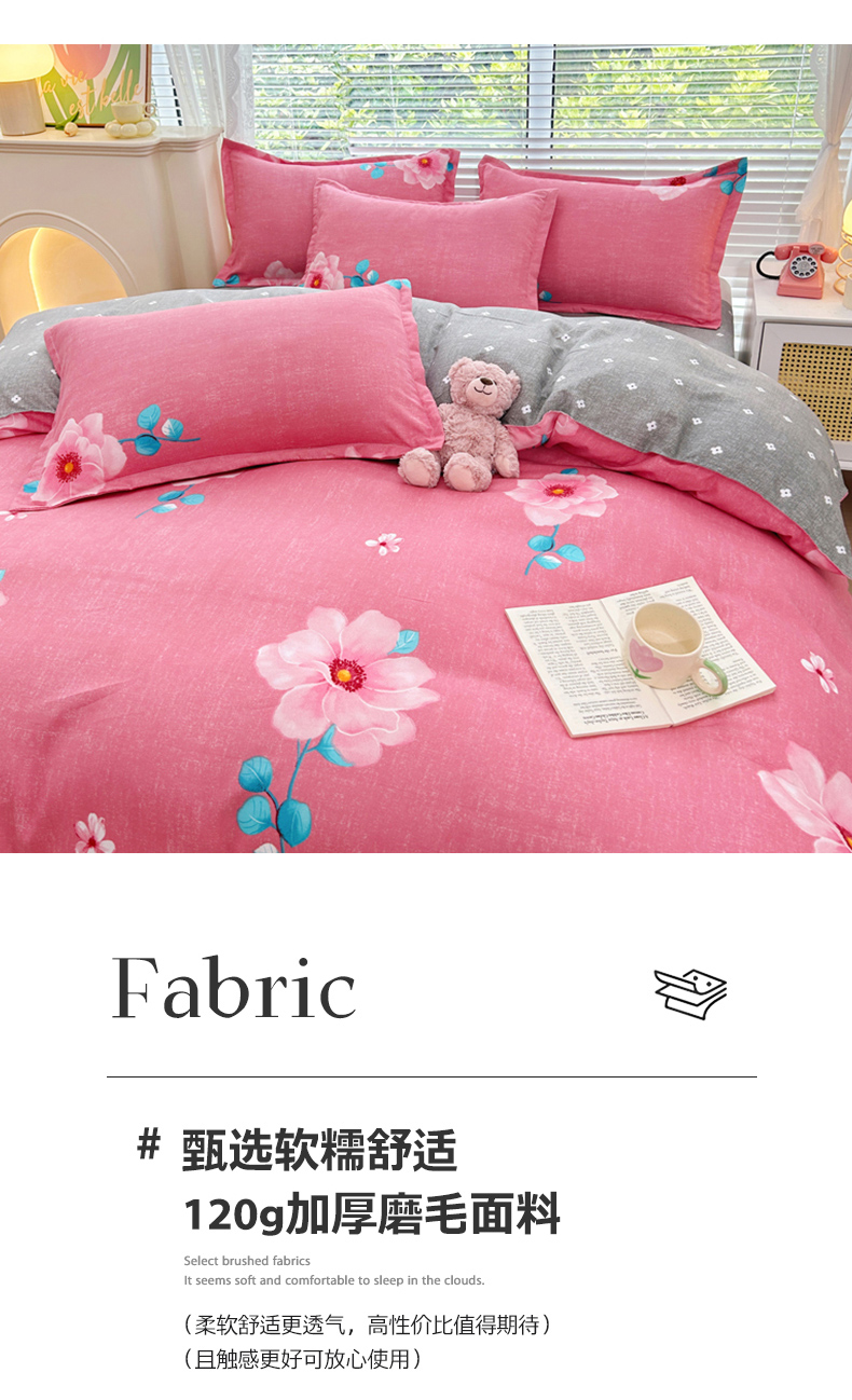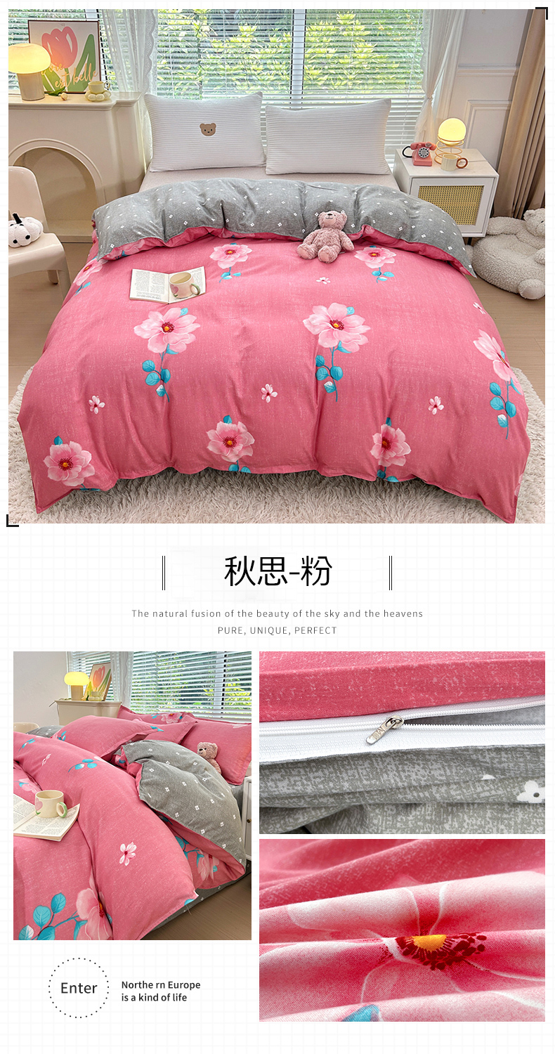 商品名称:曼璐家纺 2025新款加厚磨毛植物羊绒单被套直播爆款被套单件 秋思-粉