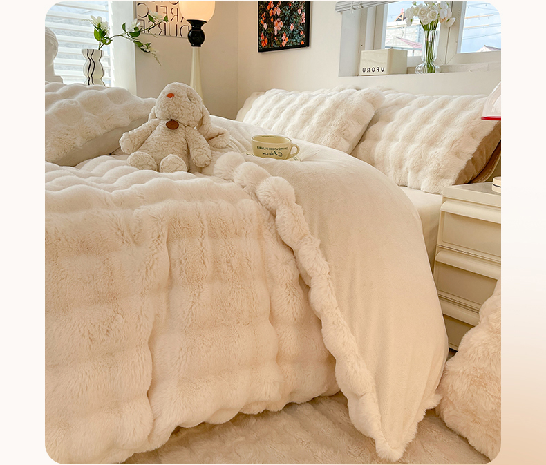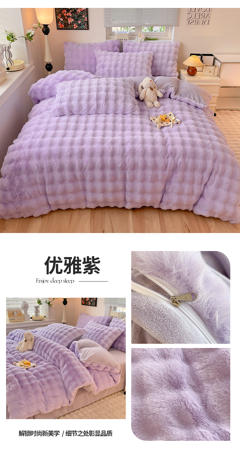 当前位置: 91家纺网 > 商品网购 > 床品套件 > 四件套 > 牛奶绒四件套 > 席之家 2024新款高克重托卡斯仿皮草大泡泡兔兔绒牛奶绒四件套清新紫